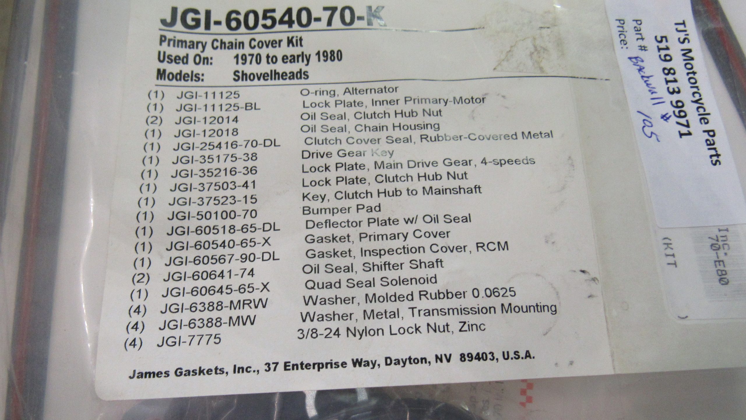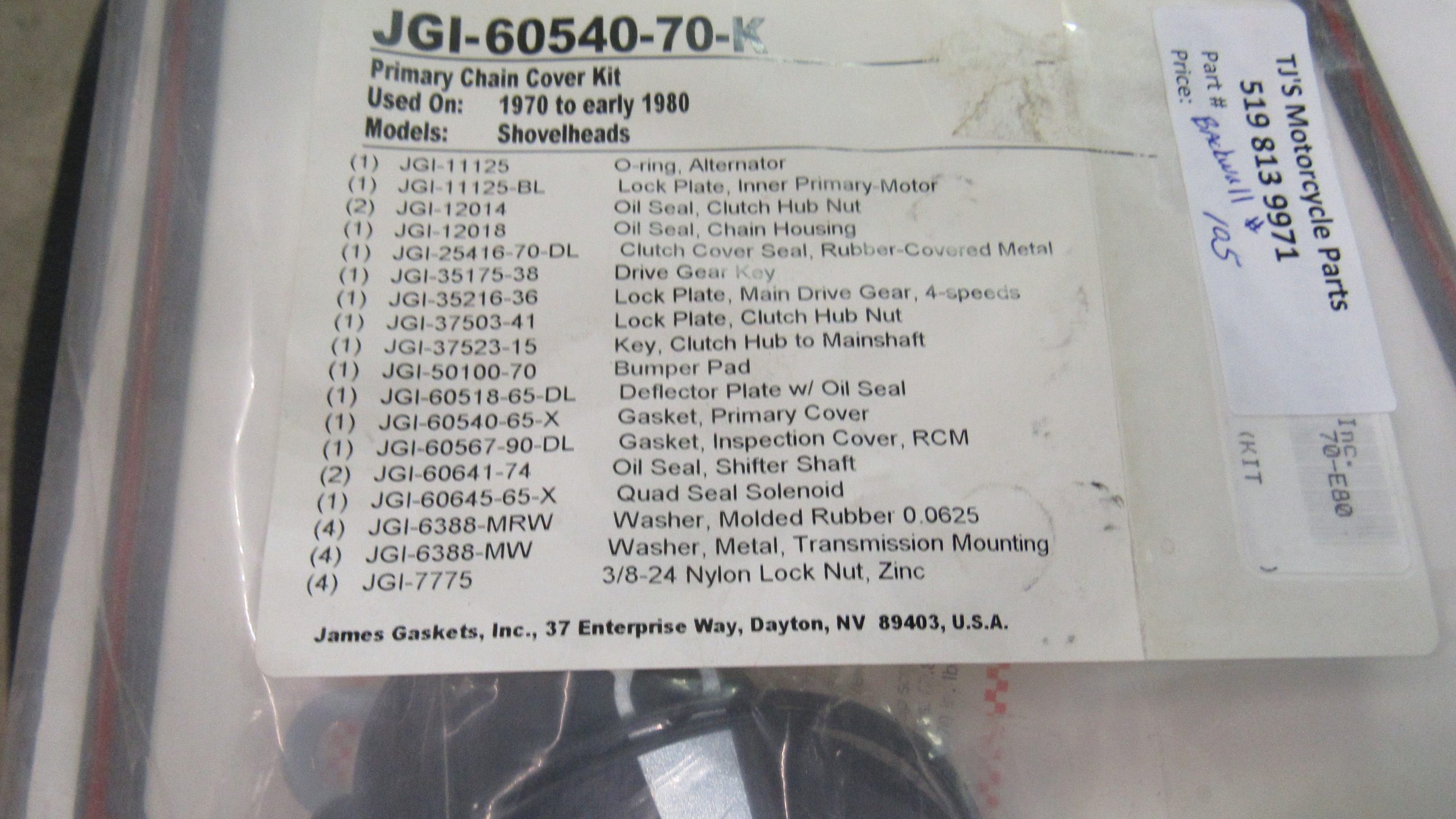 Harley Shovelhead Primary Cover Gasket Set and Seals*JAMES* 1970-E80. P/N 60540-70