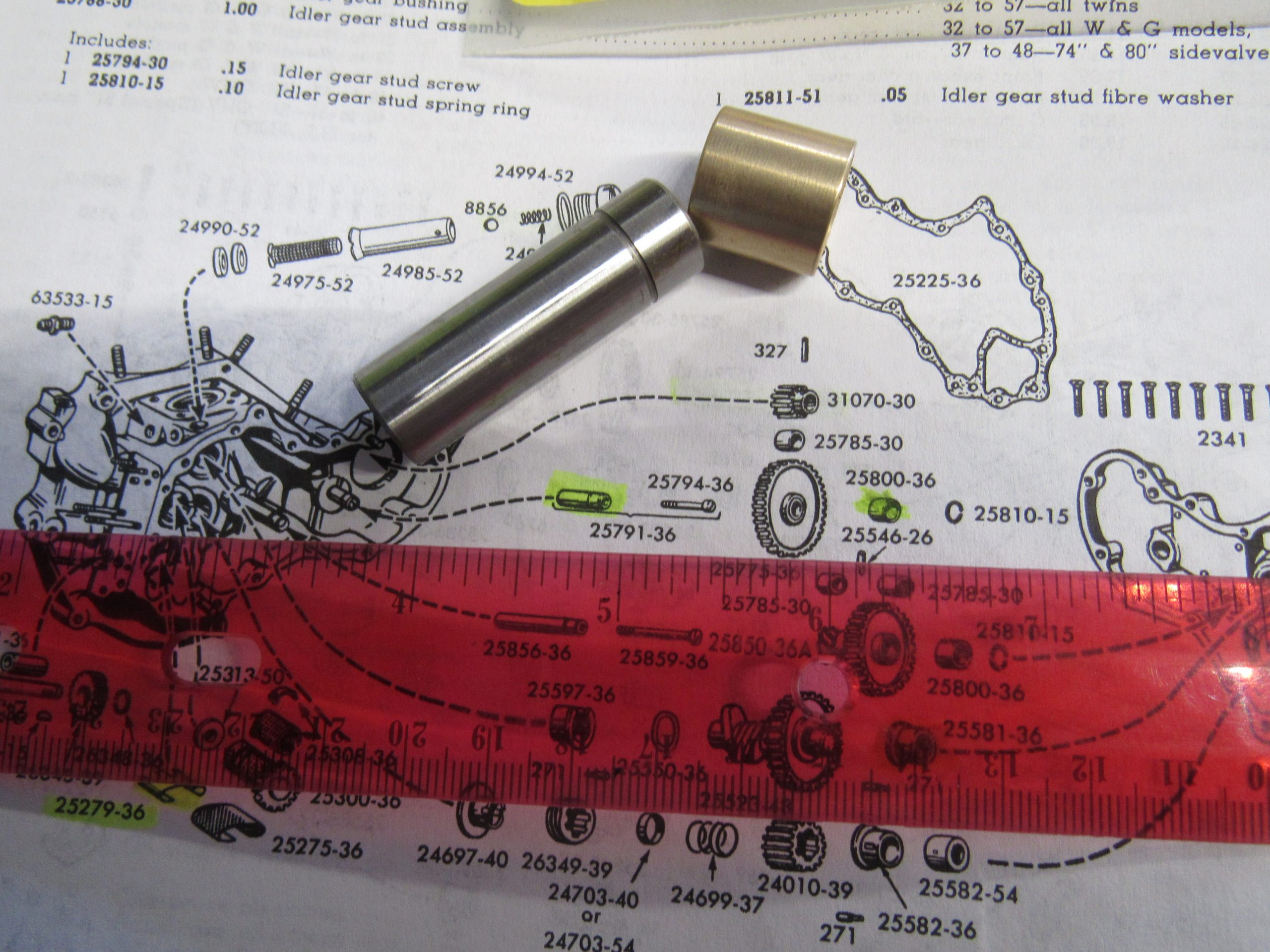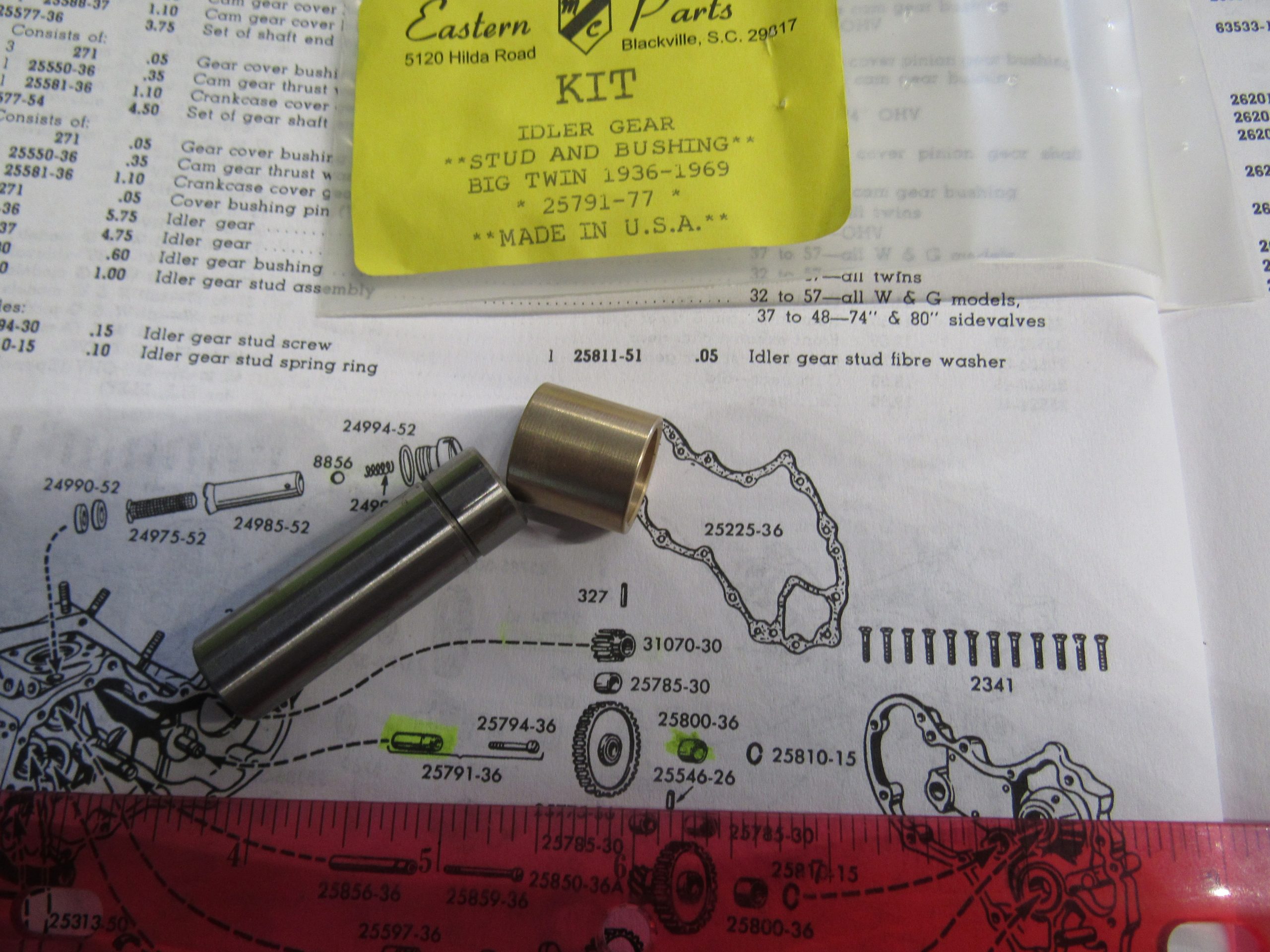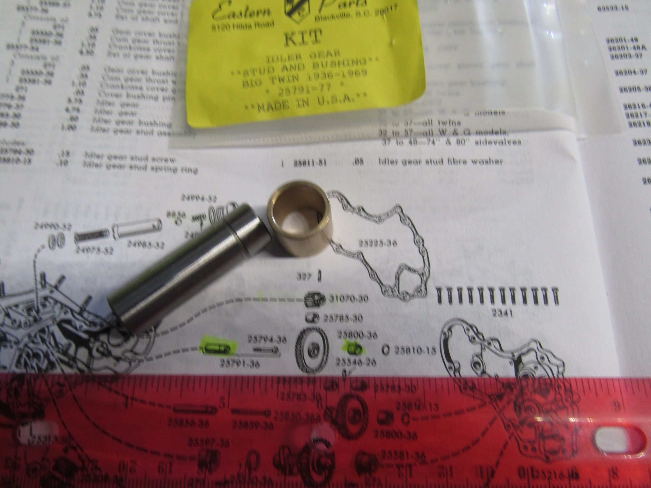 Harley Knucklehead,Panhead,Shovel,Idler Gear Stud and Bushing Kit. 1936-69. P/N 25791-36