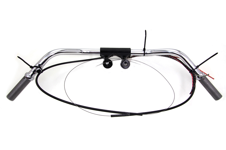 Includes black handle bar riser mount, installed spark controls, horn and dimmer switch wires. Riser mount accepts 1/2 x 20 bolts. Mount bolts and riser mount/bushings are available separately. Order grips separately. Both throttle and spark are push type. Check your parts book for correct fitment. Reproduction parts.