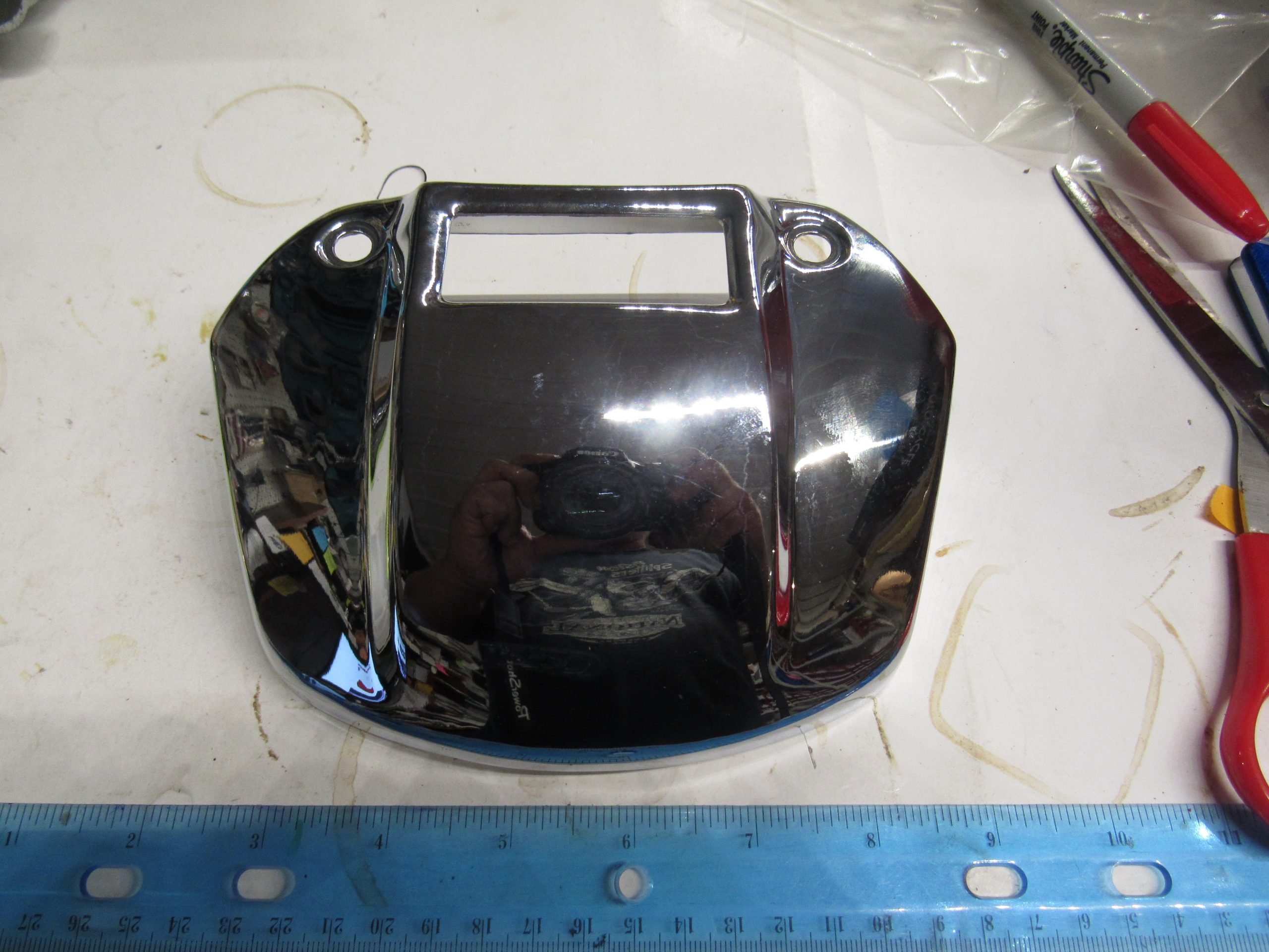 Fits Sportsters ,Shovelheads FX 1971-UP??..Chrome mount cover fits over existing headlamp visor with cutout for oil and generator lights. Reproduction part