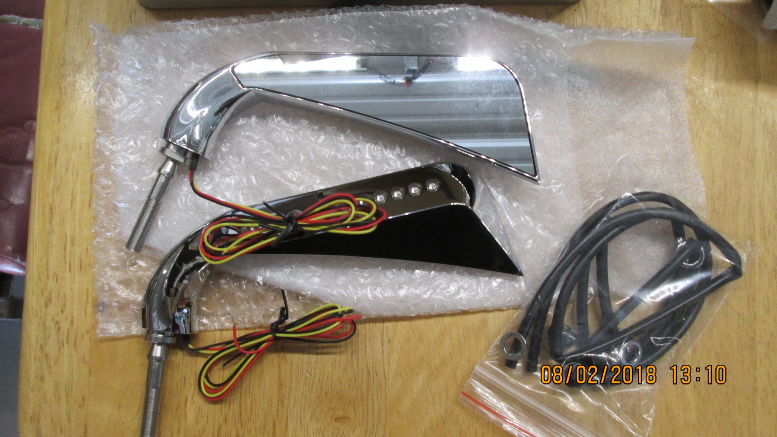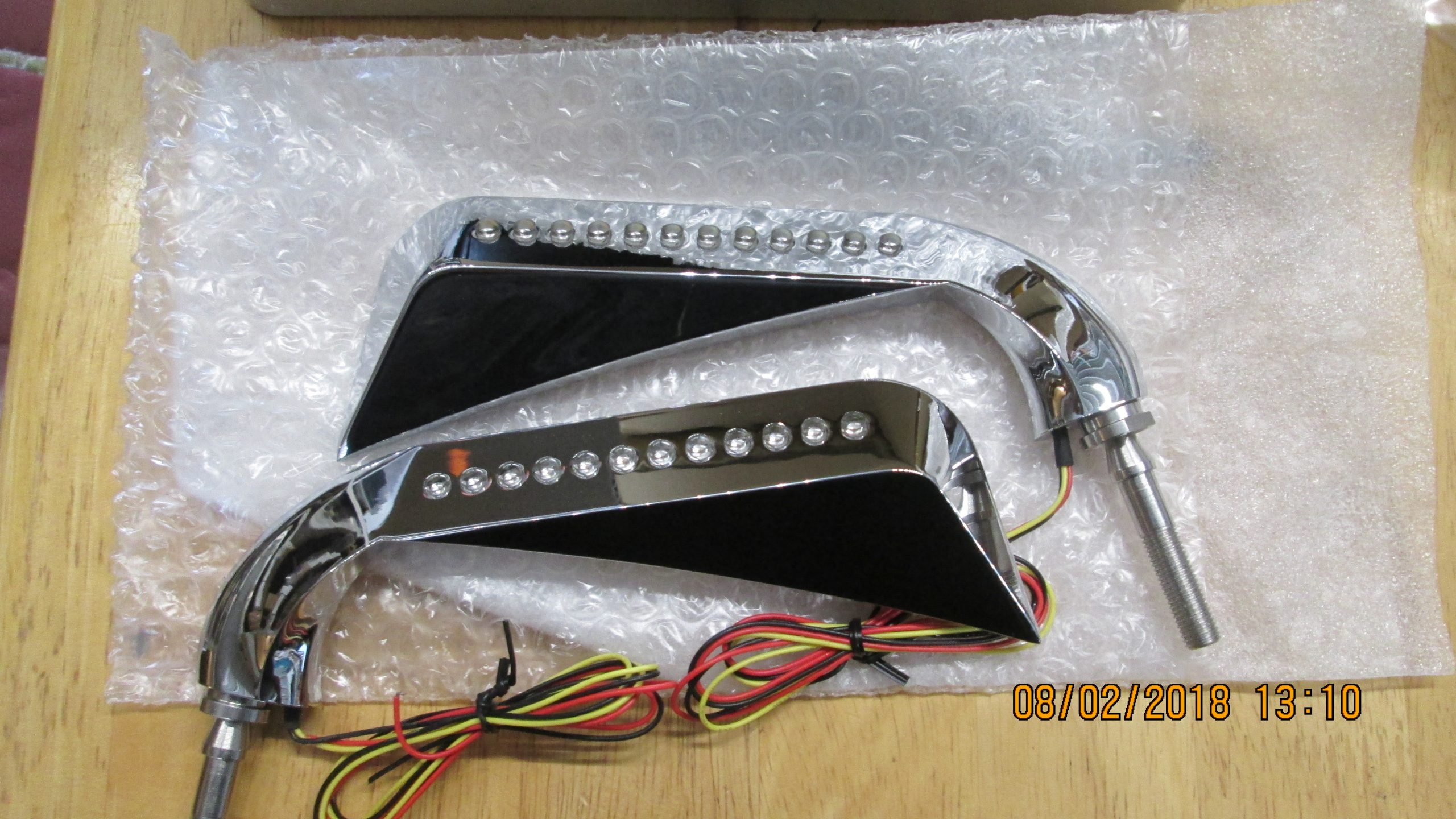 Fits many diferent models 1965-up??Evil eye shaped chrome mirror set features amber LED turn signals built into the stems. LED mirror set should be used with a load equalizer. Set of two, includes left and right.