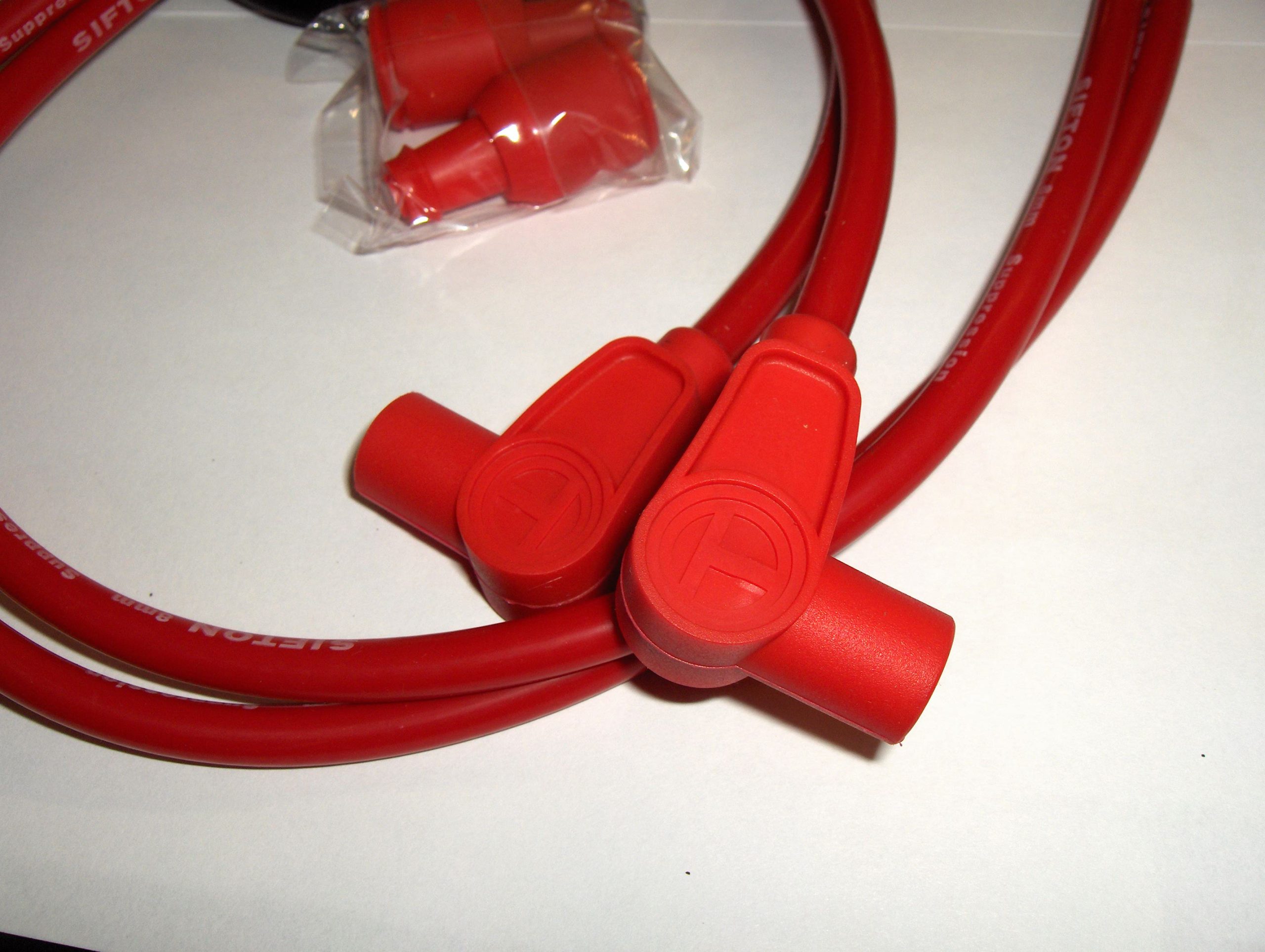 Universal spark plug suppression wire kit features 24″ wire leads with 90°.. Each wire is 24″ Long.. Molded plug boots, and straight coil boots with brass terminals.