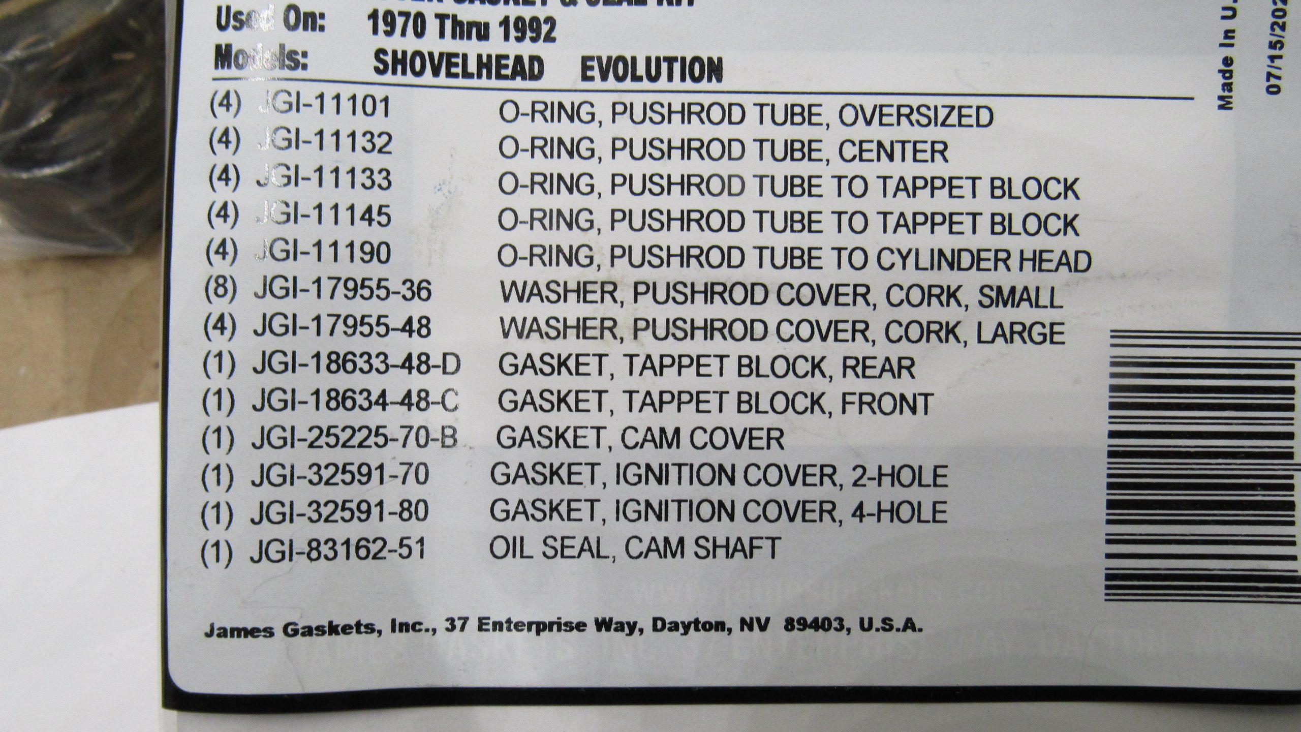 Harley Shovelhead, Evolution James Cam Cover Gasket Kit. 1970-92 P/N 25225-70-K