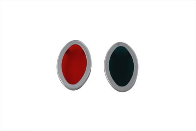 Fits Cateye Dashes 1939-46. Replacement chrome cateye dash panel lens kit includes one green and one red lens. Reproduction Parts.