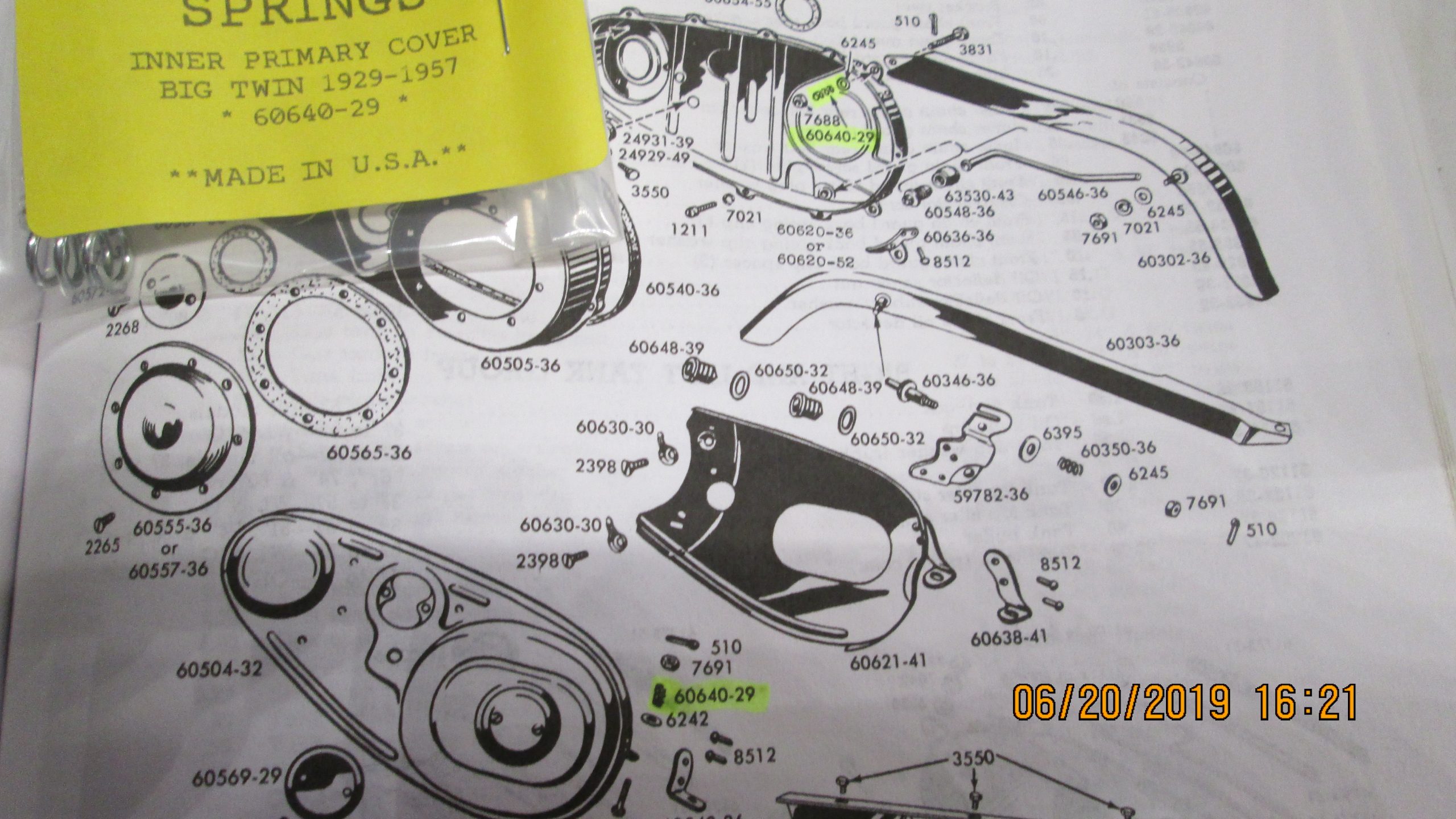 Harley Knuckle,Pan,45’s Inner Primary Spring 1929-57. P/N 60640-29