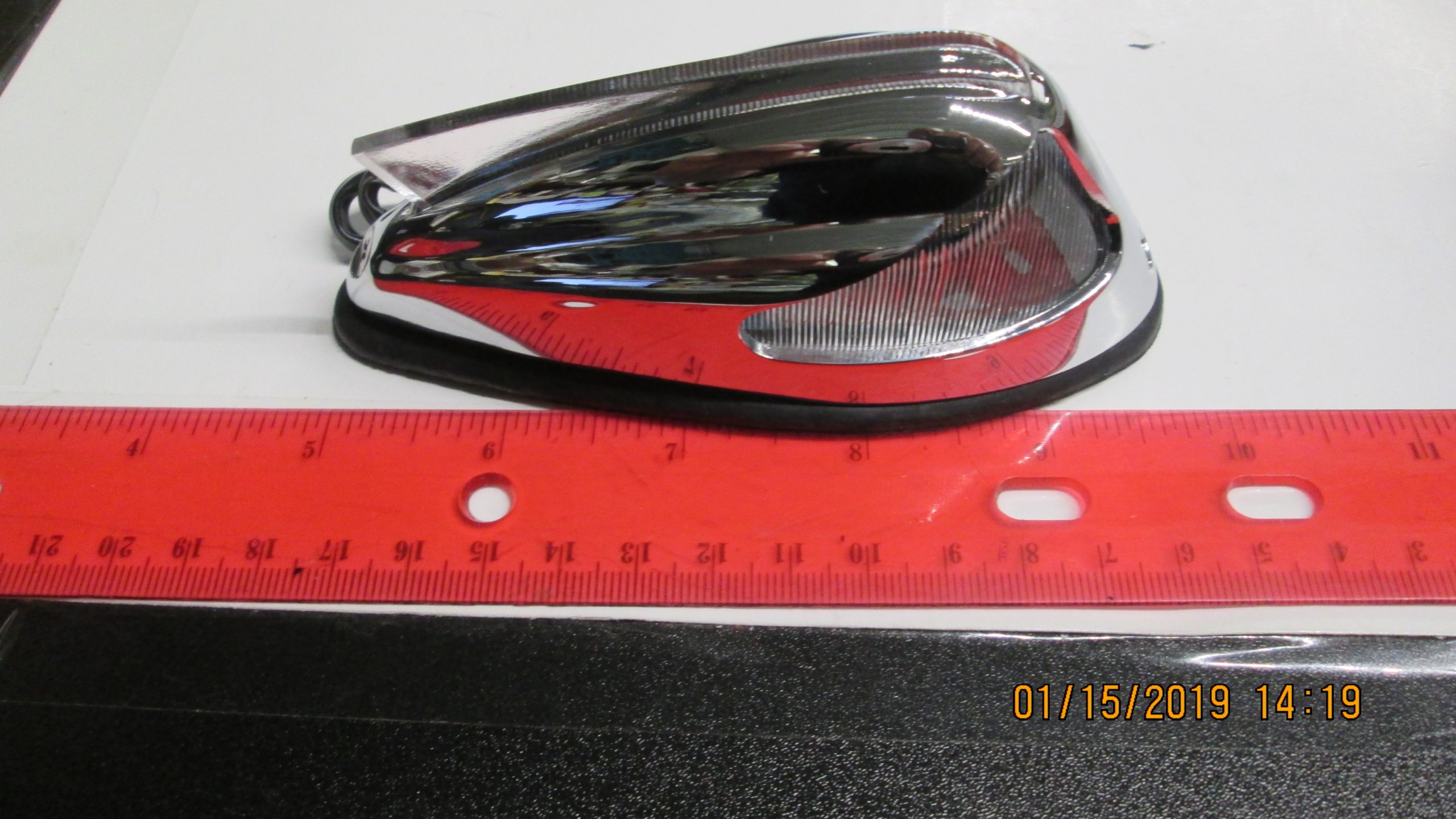 Fits Many models 1949-UP?? Replica fender lamp features a die cast chrome shell and light up clear deco fin and lens. Includes mount gasket. Check your parts book for correct fitment..Reproduction part..