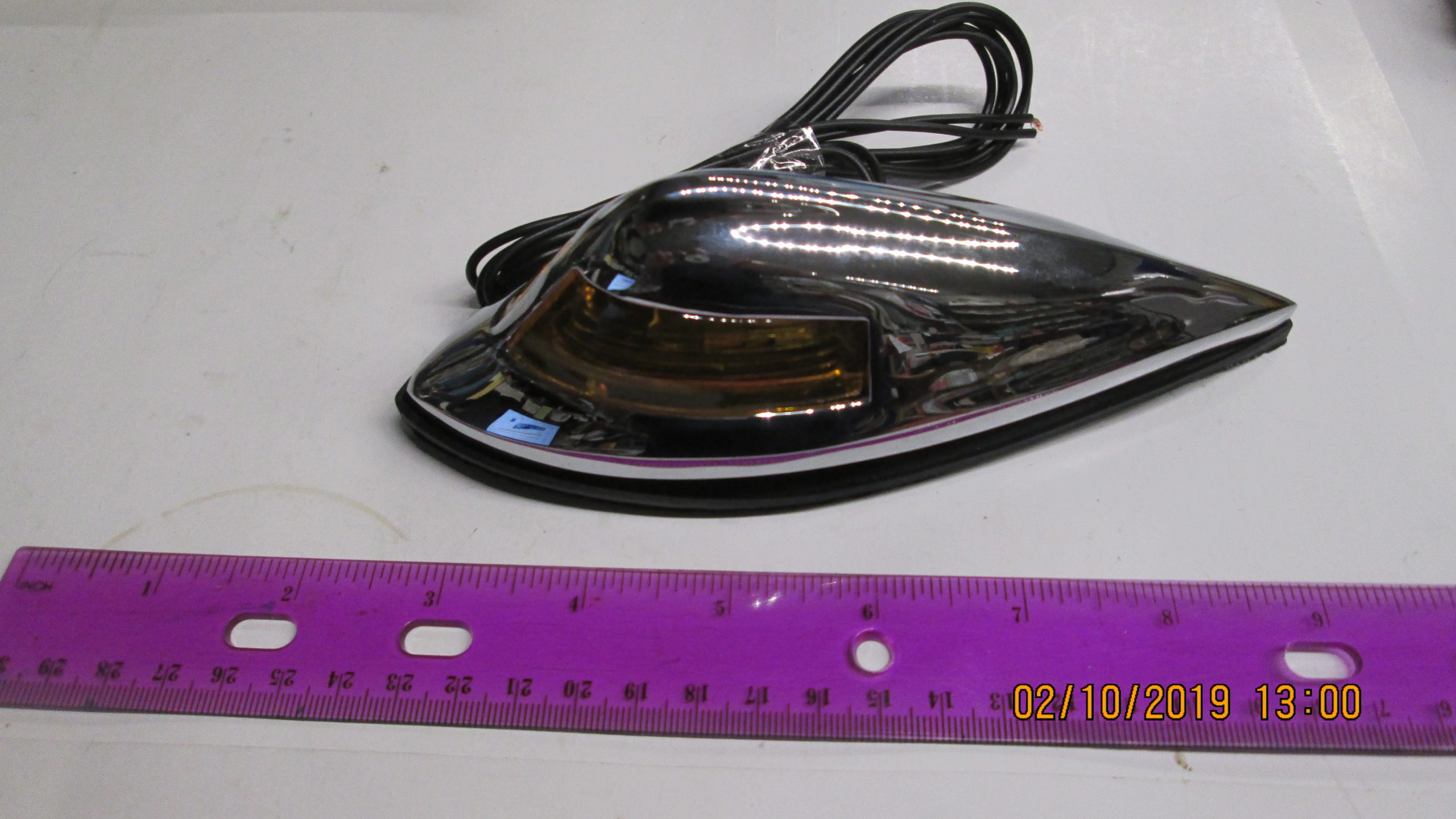 Fits many different models and years.. Has a slight curve..Chrome with amber lens.. 12 Volt..