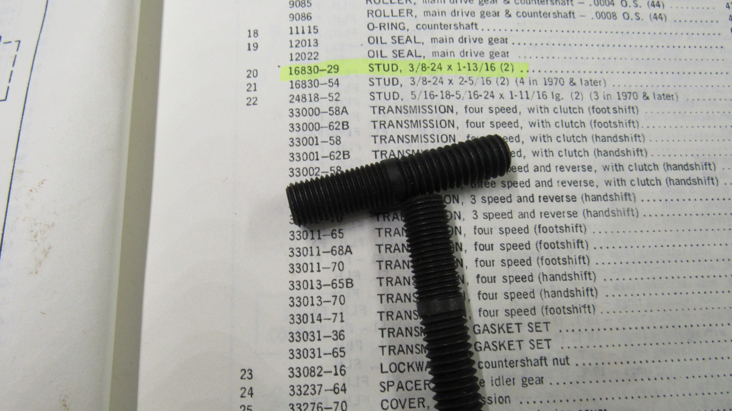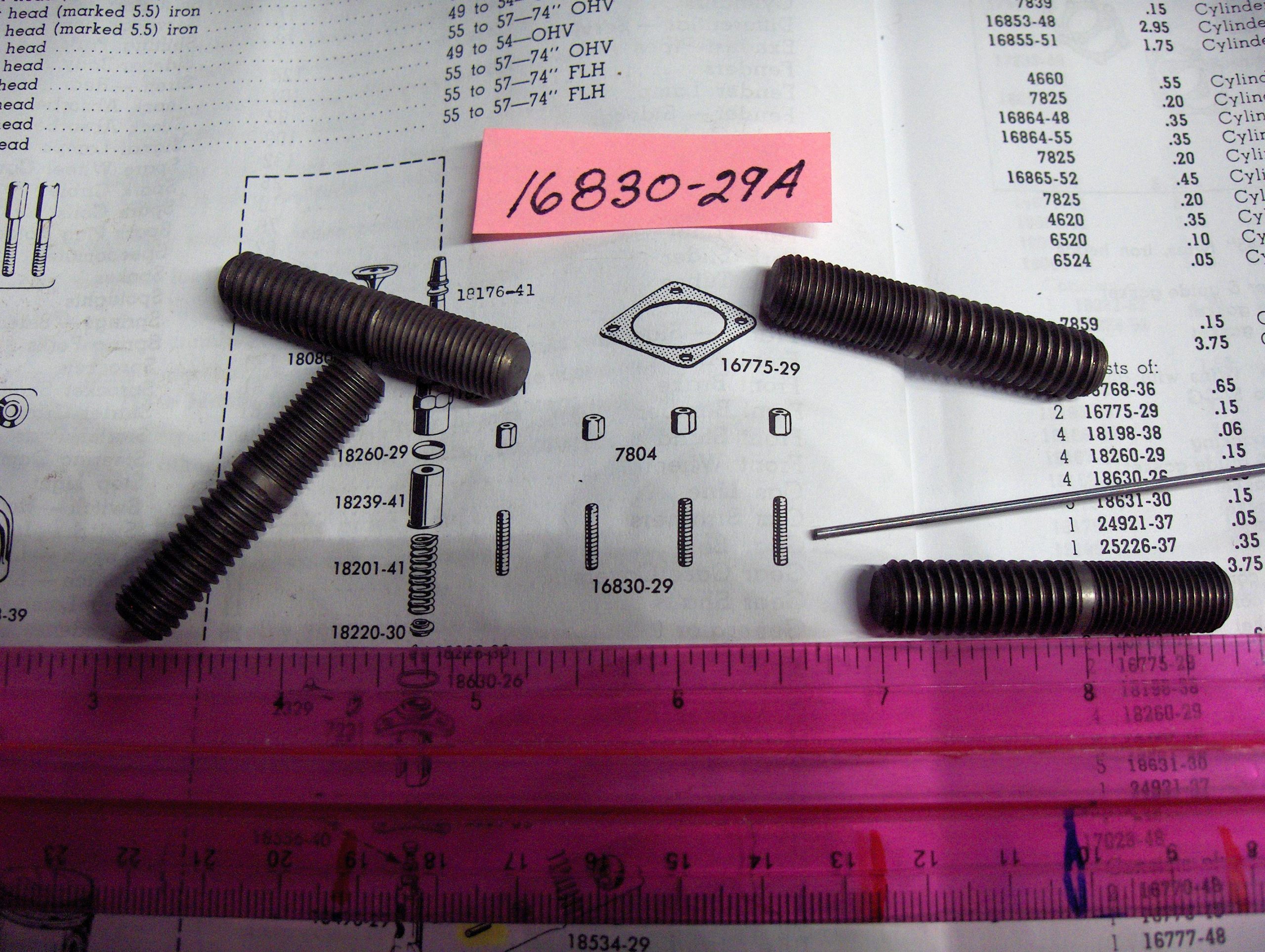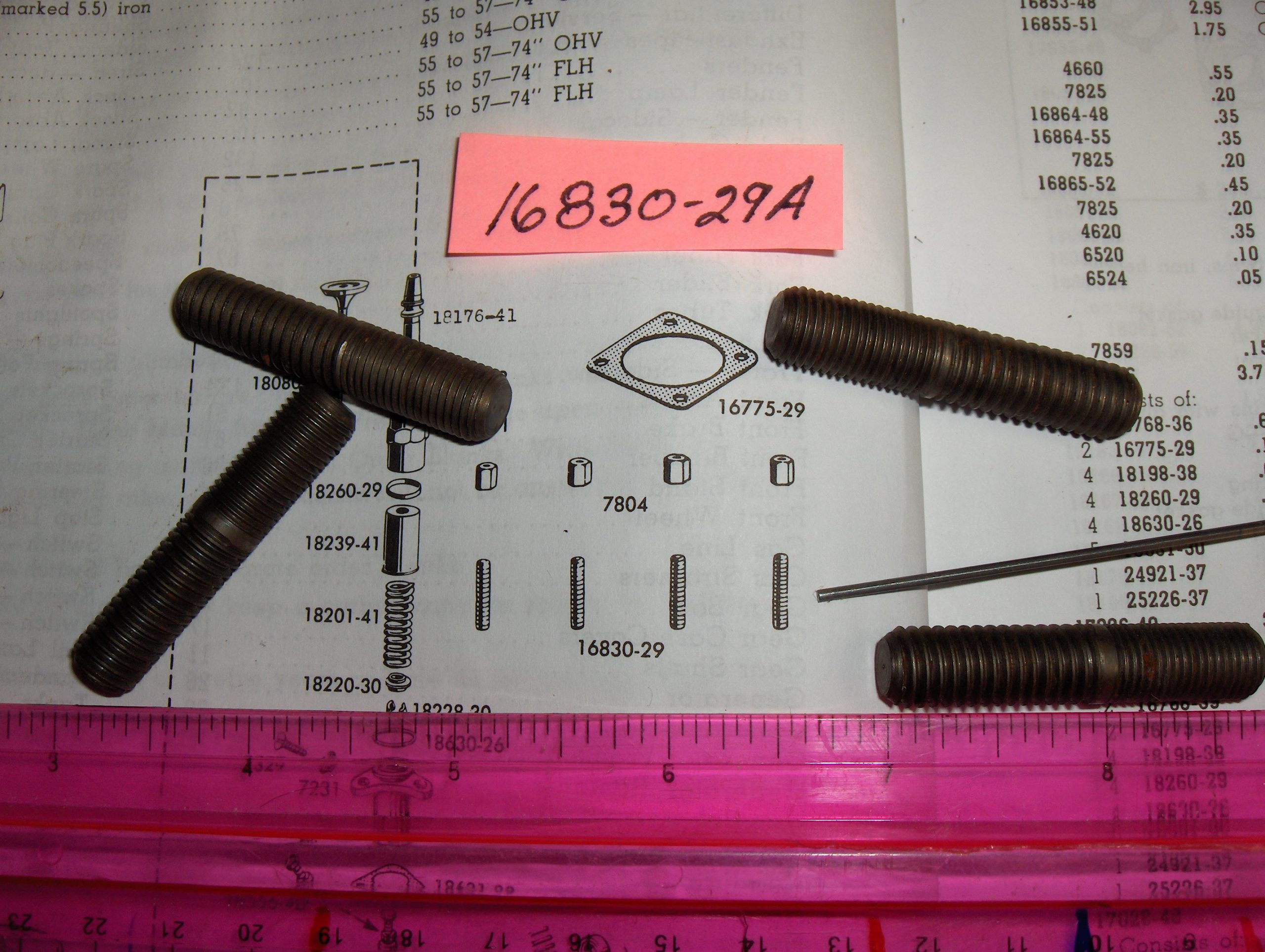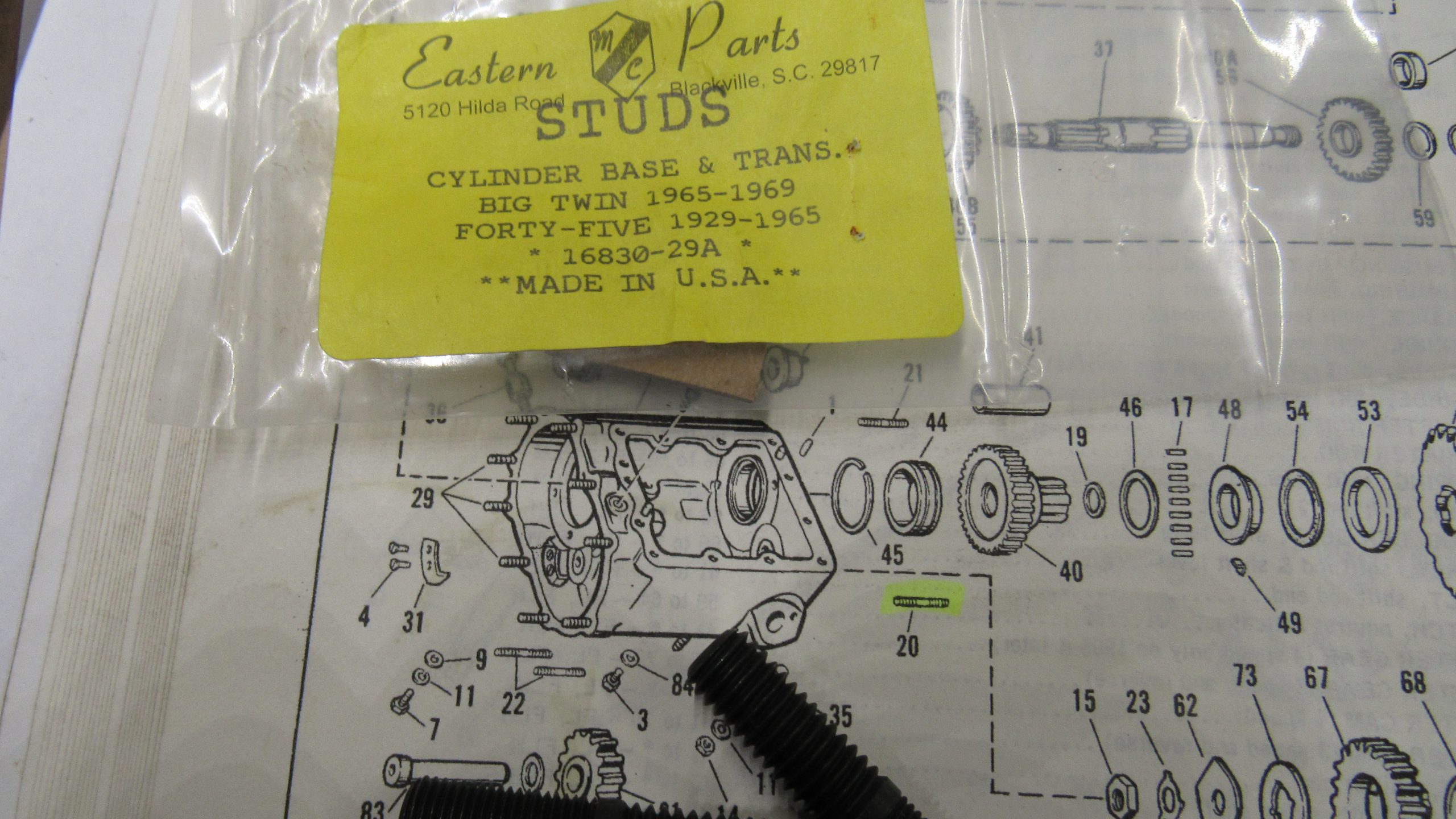 Harley 45 Flathead Solo, Servi-car Cylinder Base Studs.& Big Twin Transmission Studs 1929-73 P/N 16830-29A