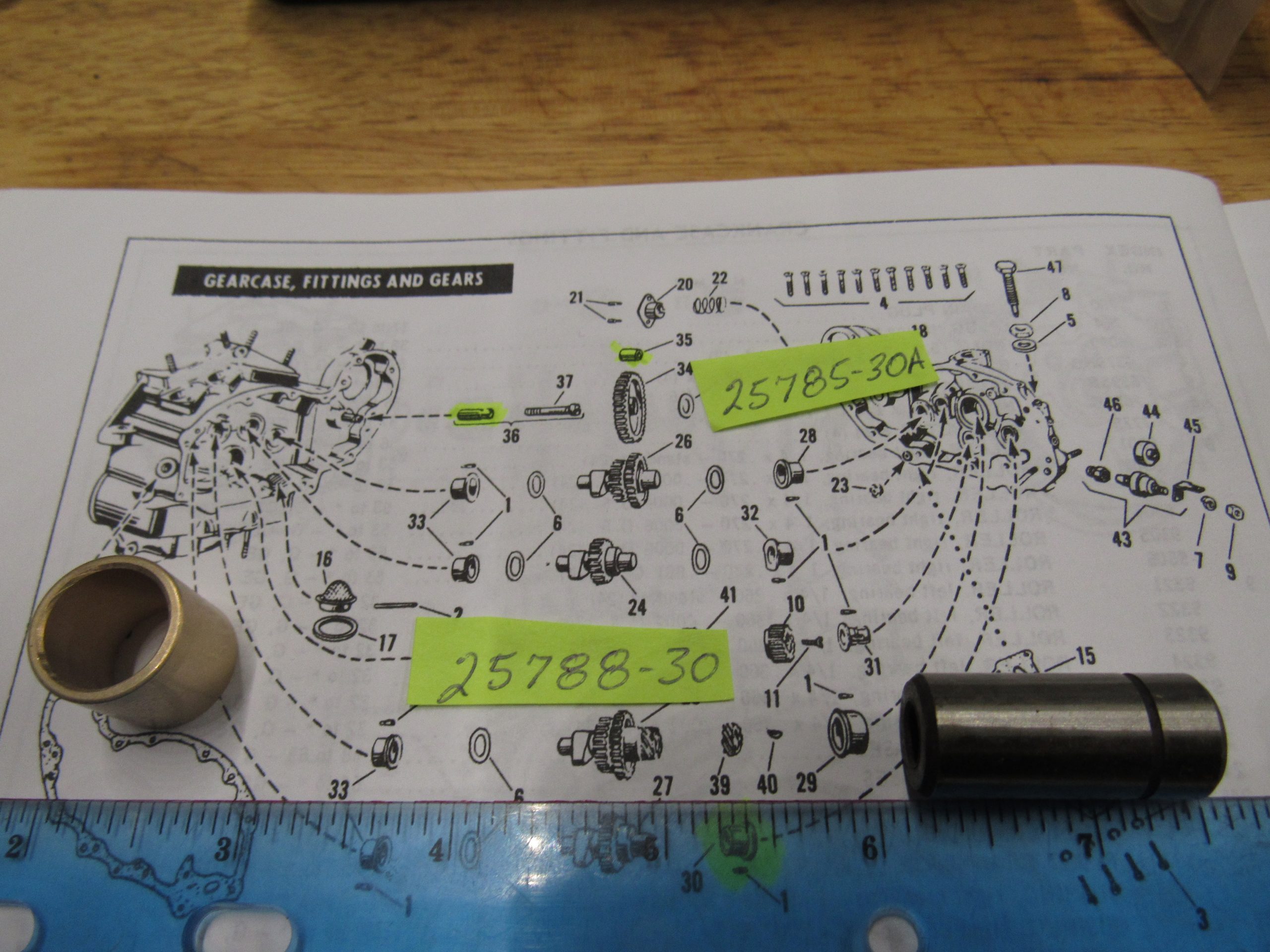 Harley 45 Flathead Solo & Servi-car Idler Gear Stud & Bushing.