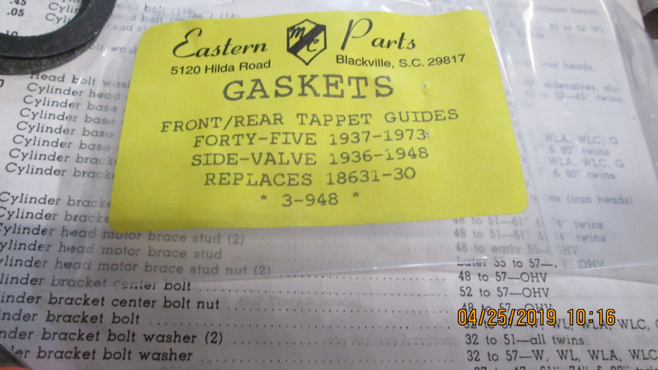 Fits 45’s,& Big Twin Flatheads 1930-73..You get 4 Gaskets per order.. Check your parts book for correct fitment..Reproduction parts..