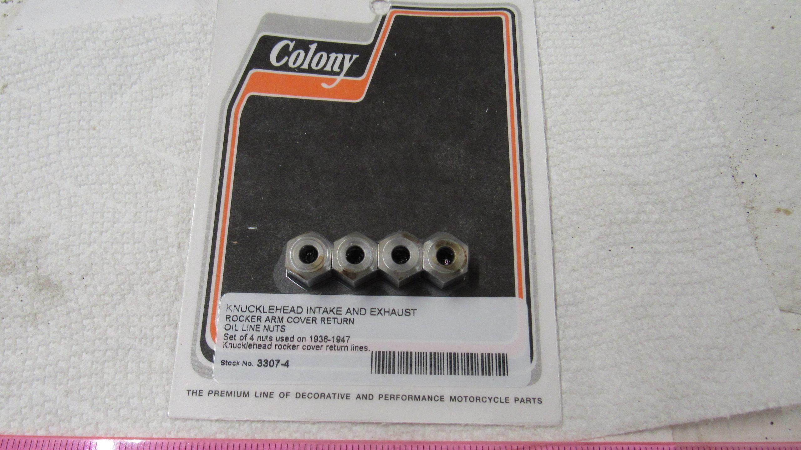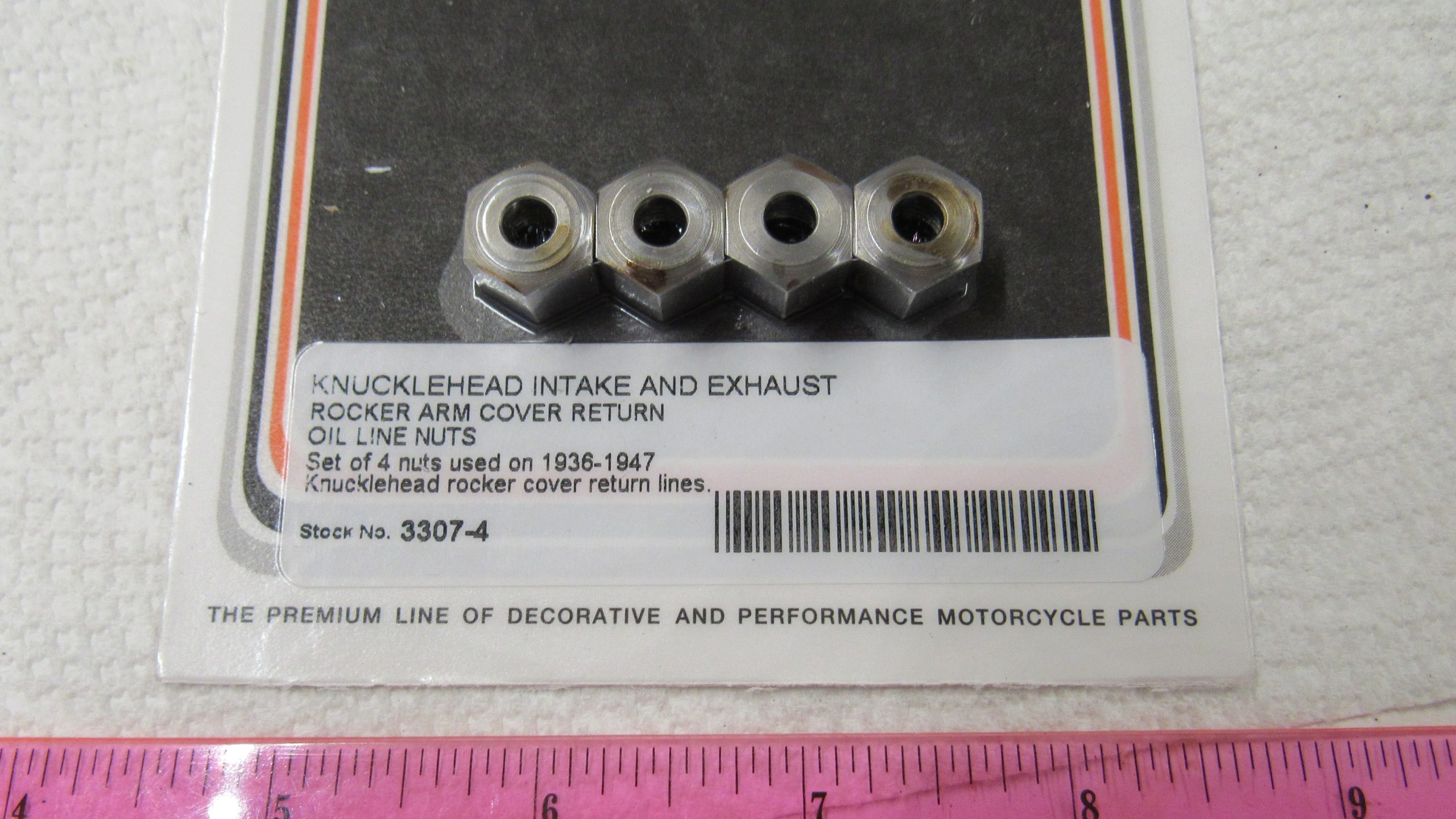 Harley Knucklehead Intake & Exhaust Rocker Arm Cover Return Oil Line Nuts.