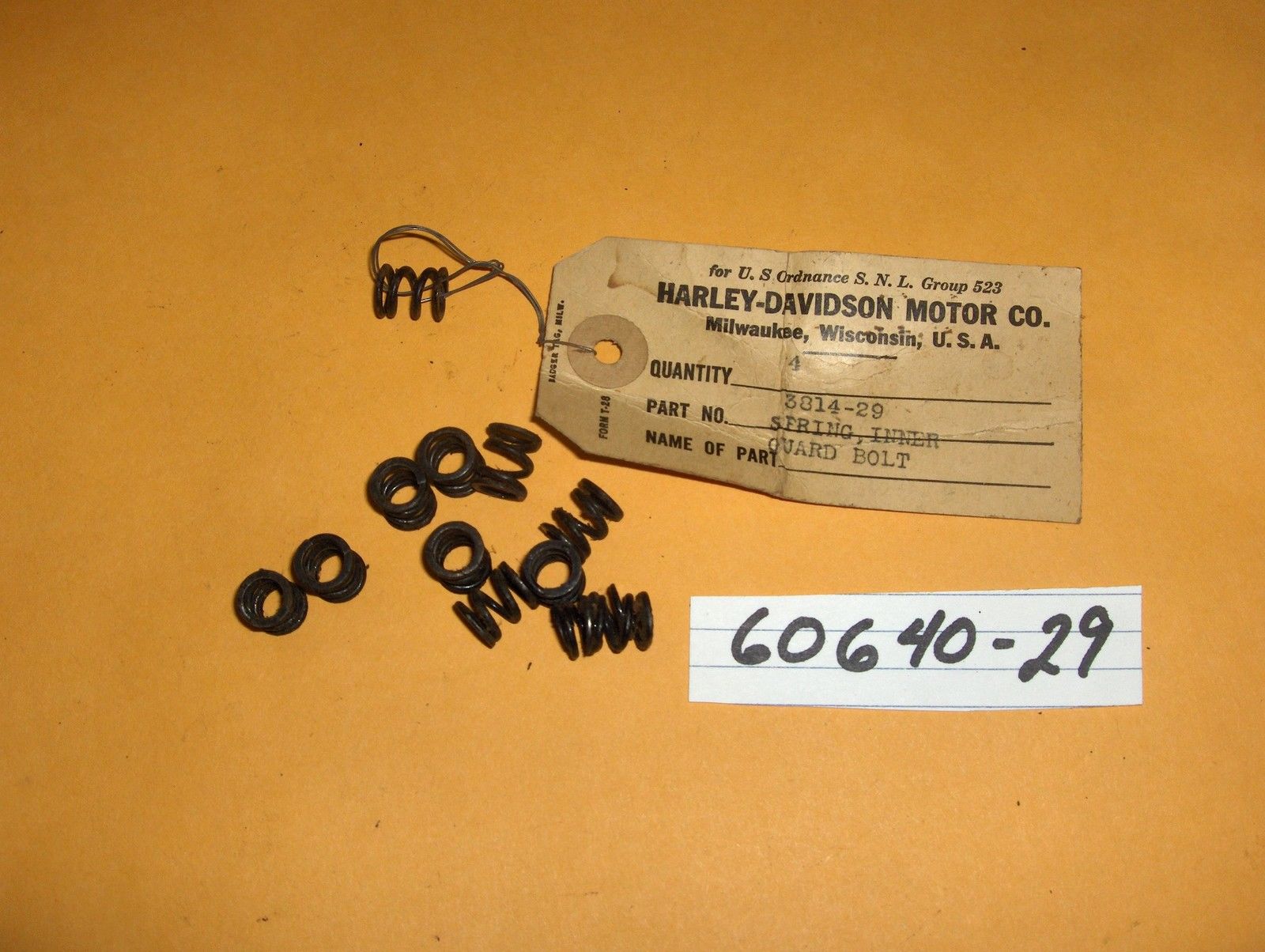 You get 5 “NOS” springs with each order.Fits 45 solo models and servi-cars…This is a small spring that goes around the bolt that holds on primary cover to the frame…You will not get Harley Davidson tag..