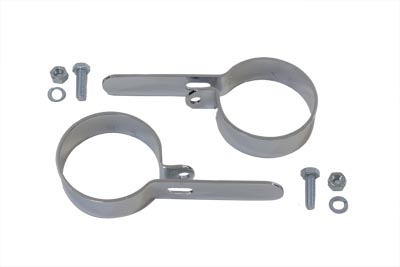 Fits all models with 2 3/4″ mufflers. Custom applications.. 2-3/4″ hanger style muffler clamp set with a short strap to mount muffler body to the frame. Features a chrome finish. Sold in pairs..