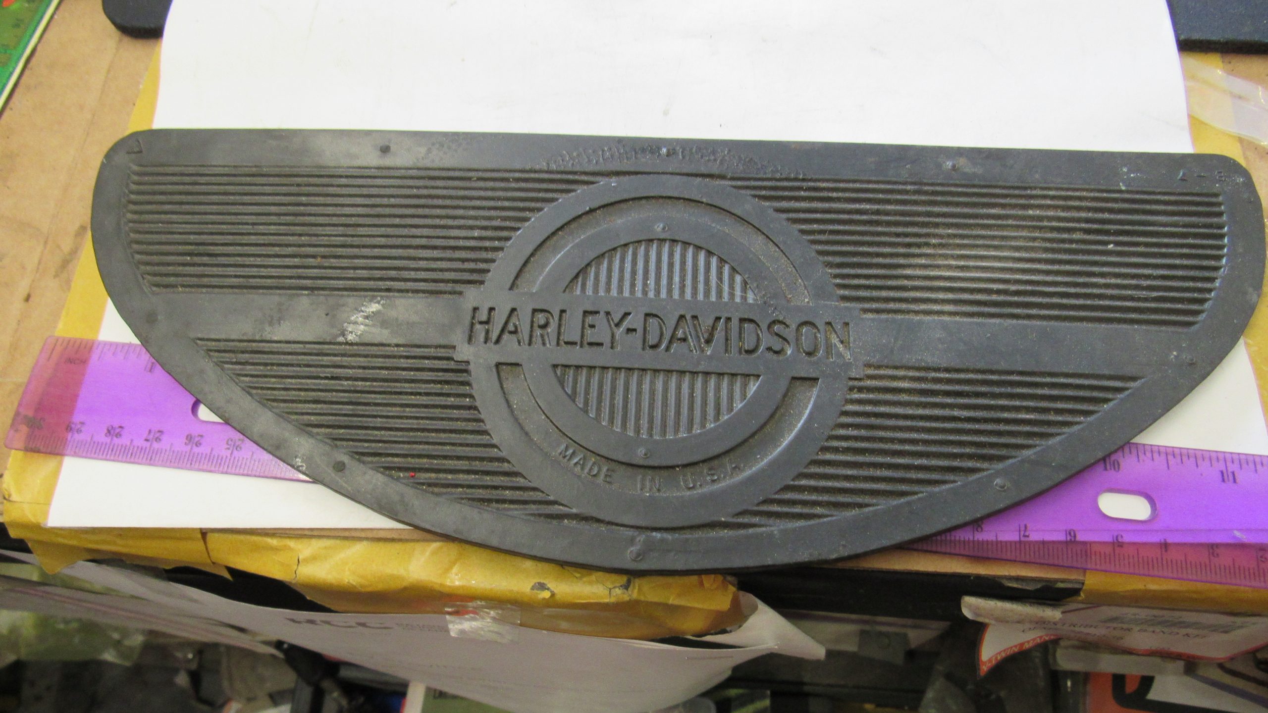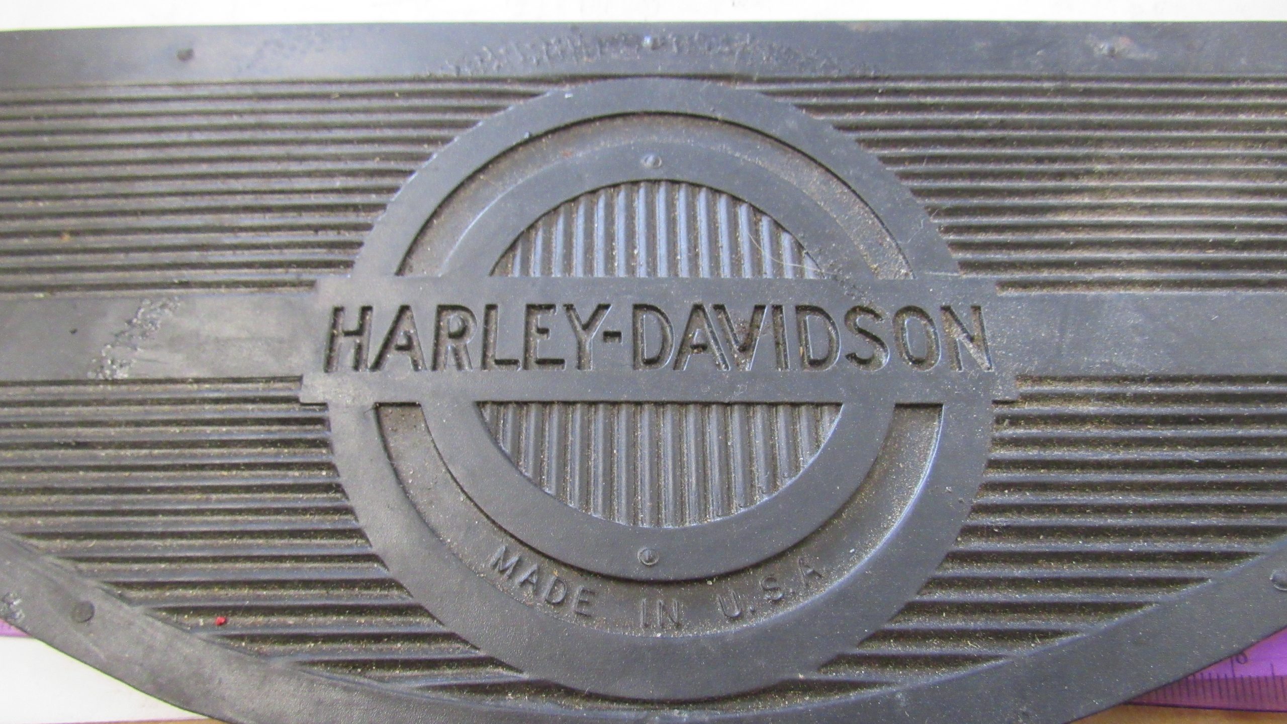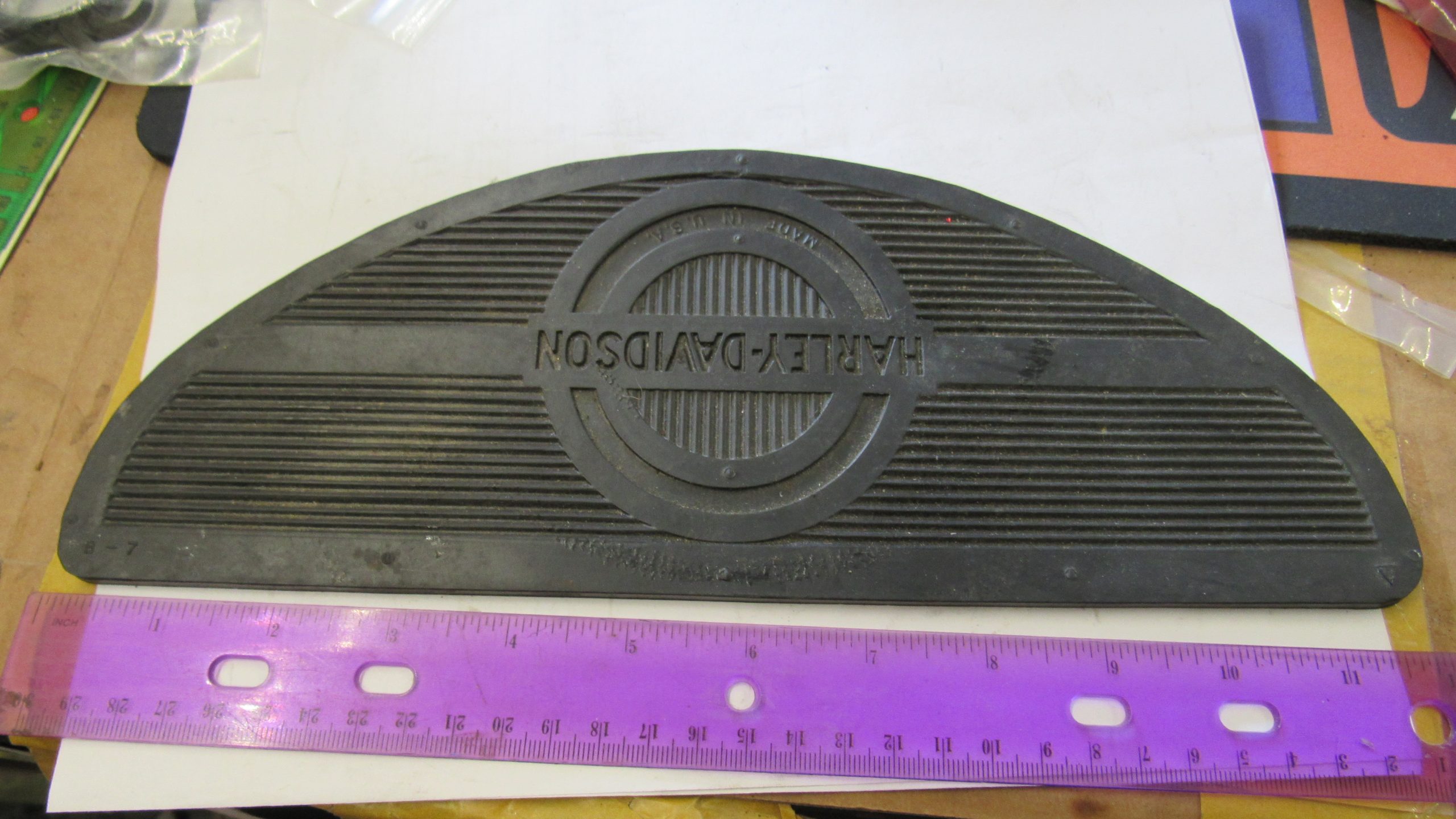 Fits all Half moon Footboards.. “”Harley Davidson”” Logo in middle. * They do not come with rivets* Take a good look at pics before buying.. Reproduction parts.