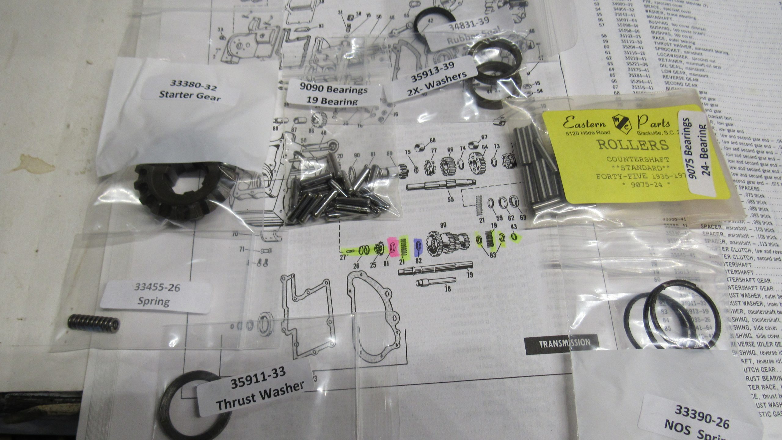 Harley 45 Flathead & Servi-Car Transmission Countershaft Parts Kit.1941-63..