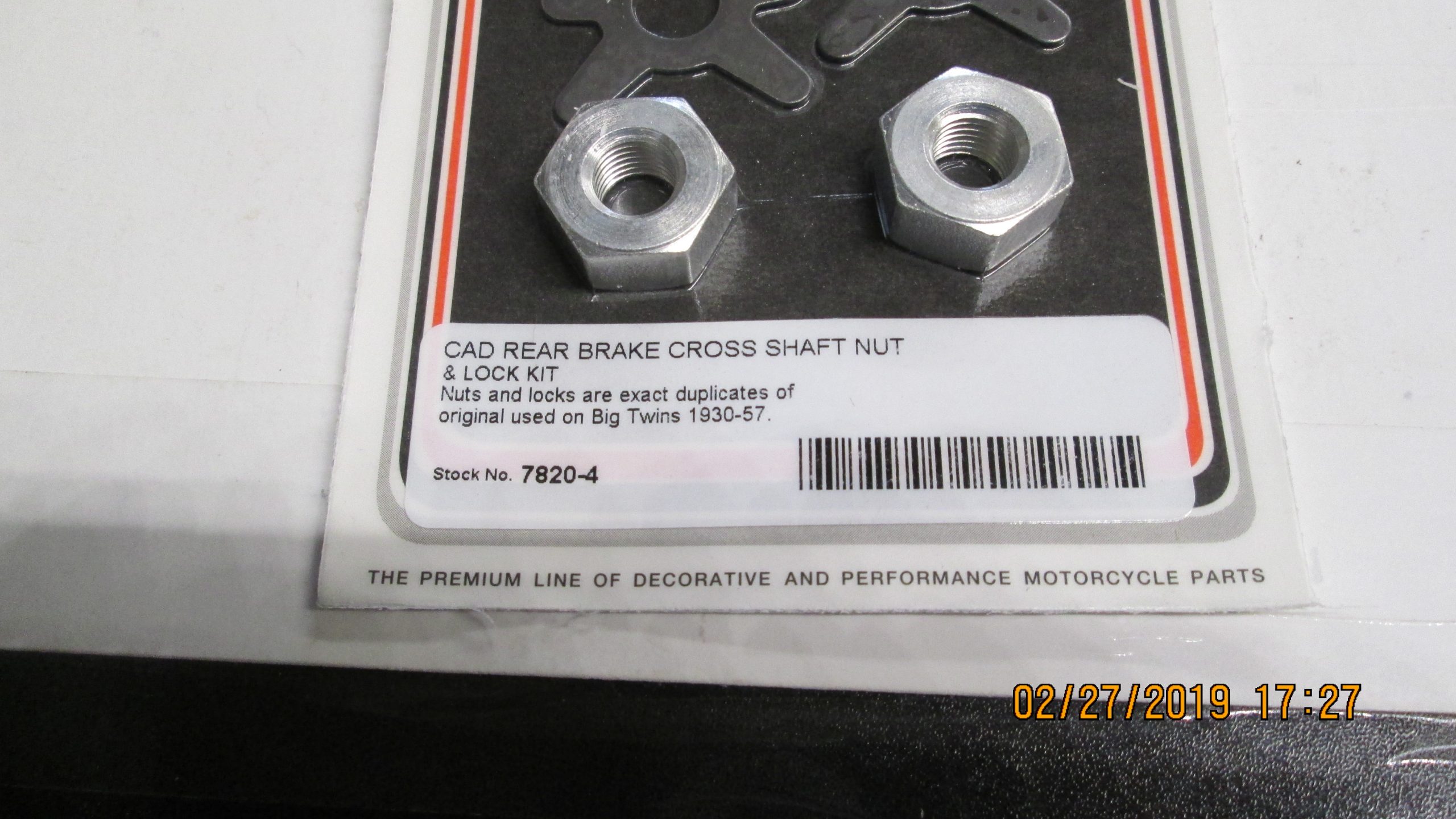 Fits Big Twins 1936-57..Cad brake shaft nut and lock kit includes 2 hex nuts and 2 parkerized locks to prevent the brake cross shaft from loosening..Check your parts book for correct fitment..Reproduction parts..