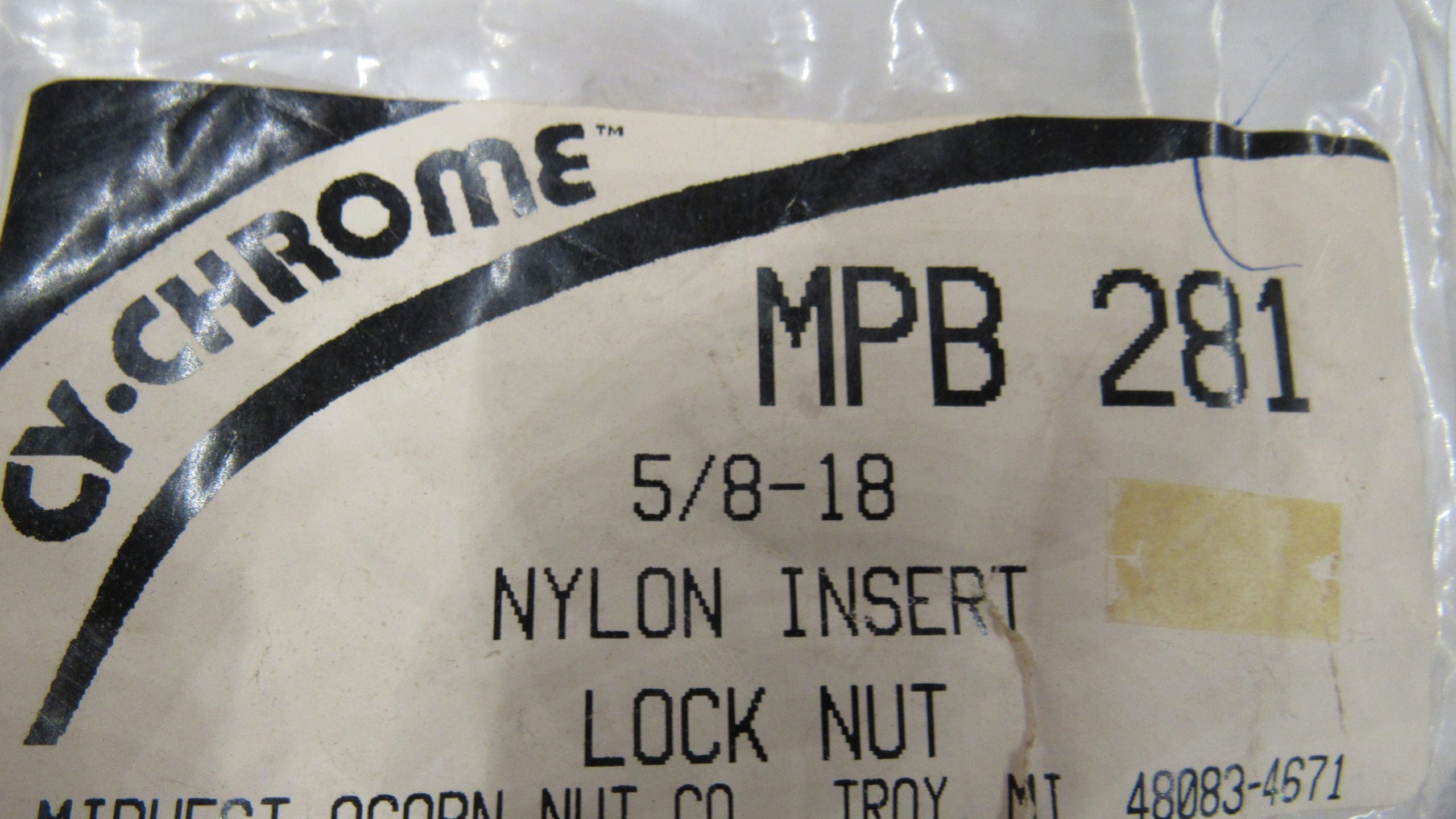 Chrome Nylon Lock Nut. 5/8-18. Fine Thread