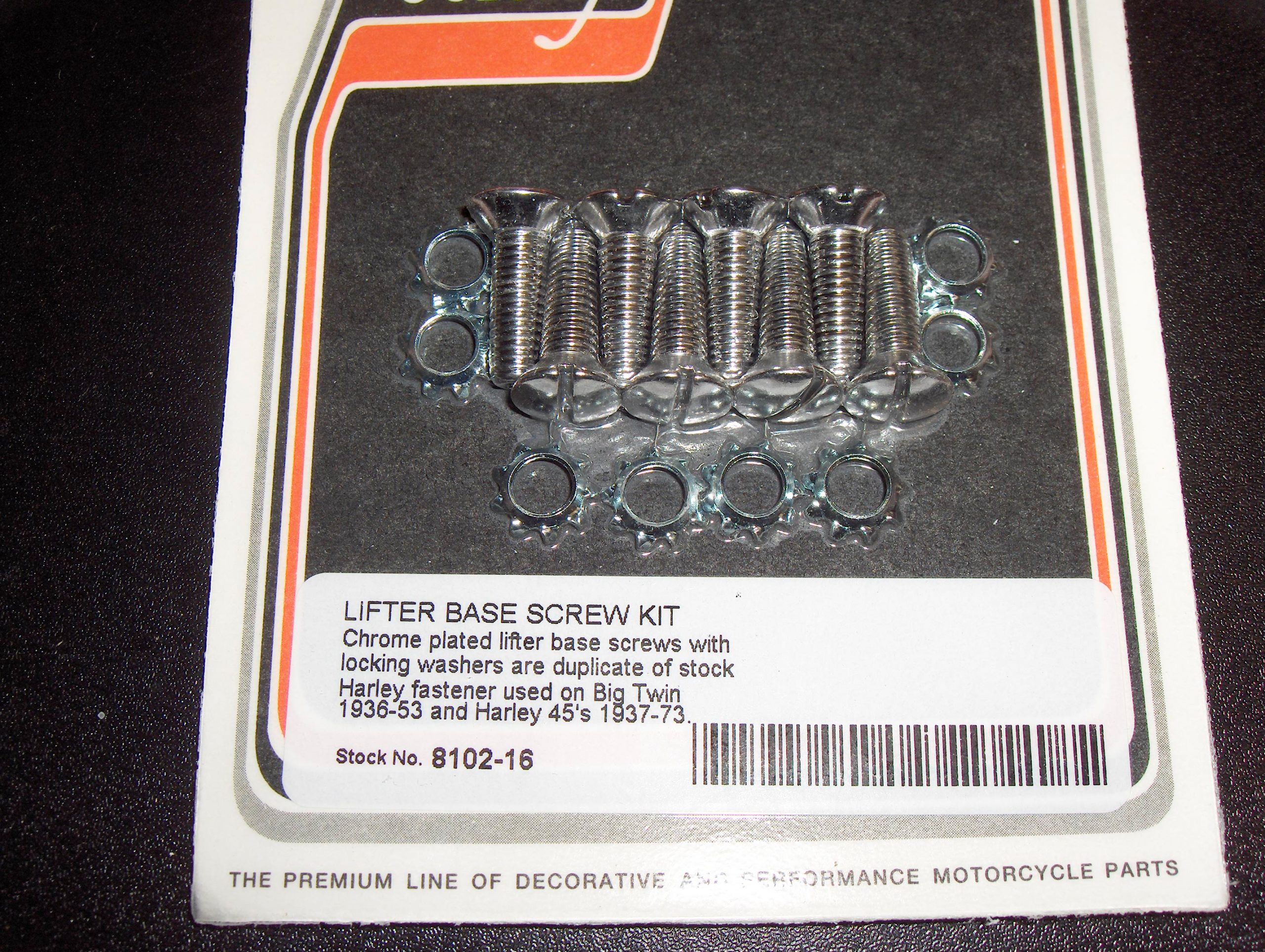 Complete Set of 8 with locking washers..Fits 45 flatheads 1937-73.. Big Twins 1936-53..Check your parts book for correct fitment..Reproduction parts..