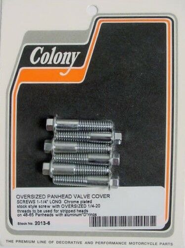 Fits Panheads with Alloy D-Rings..1948-65..Chrome..Oversize ..1/4-20 Threads..Used for stripped heads on panheads with alloy D-Rings..Made in USA..6 Screws in a pack.. Reproduction Parts..