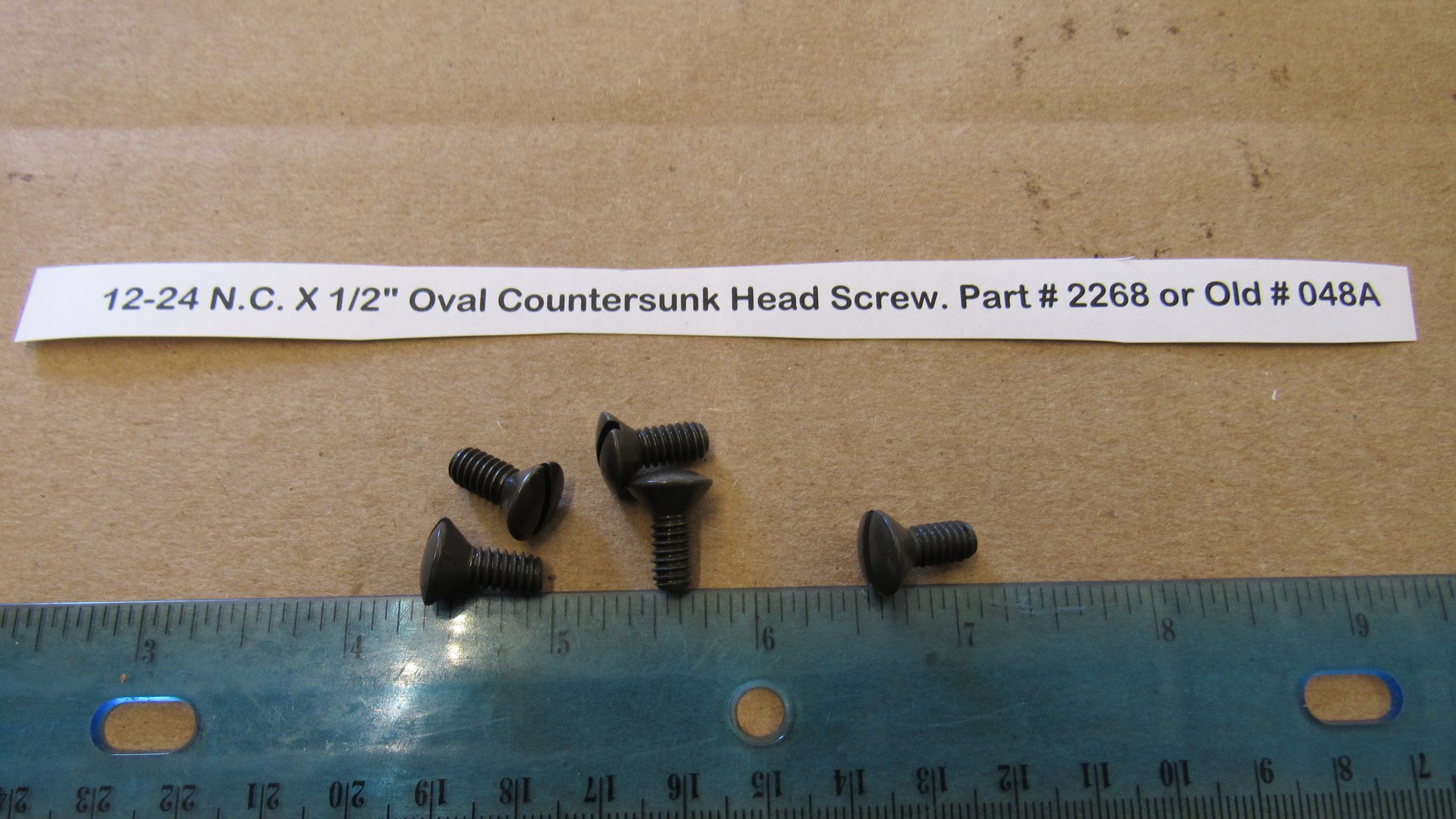 Harley Knuckle,Flathead,Pan, PARKERIZED 12-24 N.C. X 1/2″ Oval Countersunk Head Screw. Part # 2268 or Old # 048A