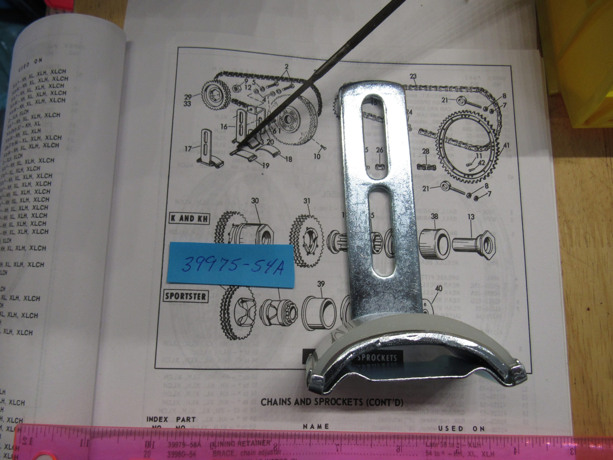 Fits Sportsters 1957-69..Primary chain tensioner kit includes pad, clip, and brace..Check your parts book for correct fitment..Reproduction part..