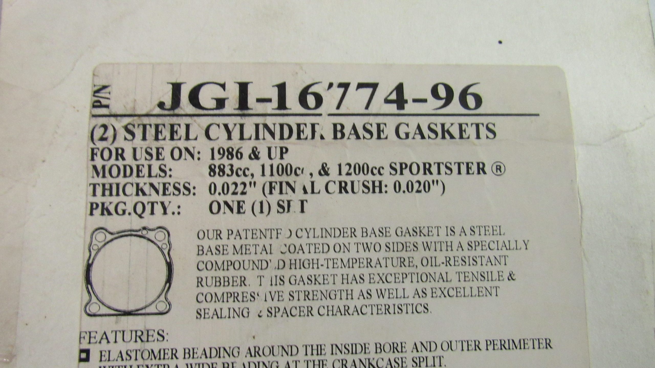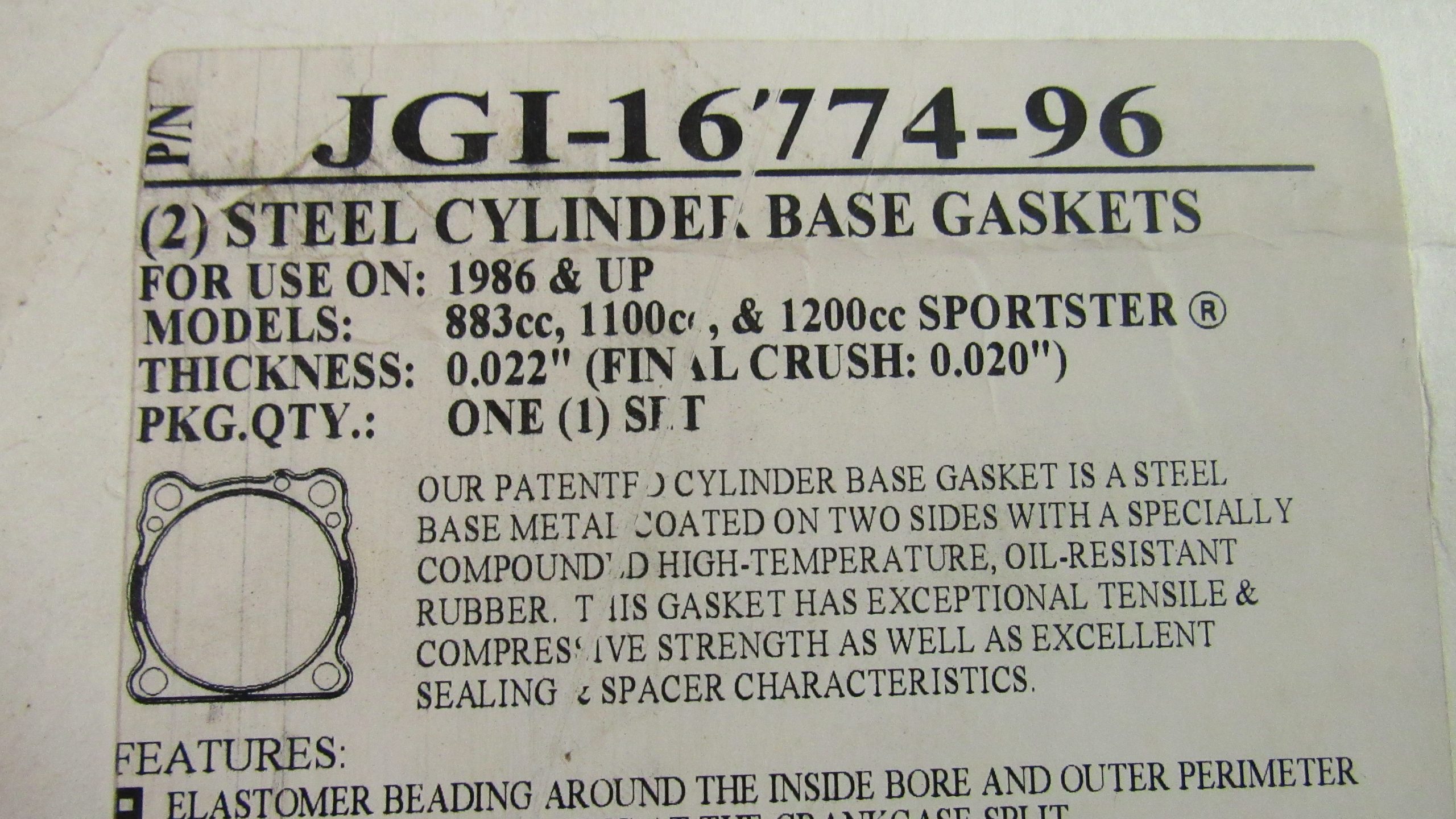 Fits Sportsters 1986-UP.** James** 0.022 Thickness-(Final Crush 0.020) Check your parts book for correct fitment.. Reproduction parts.