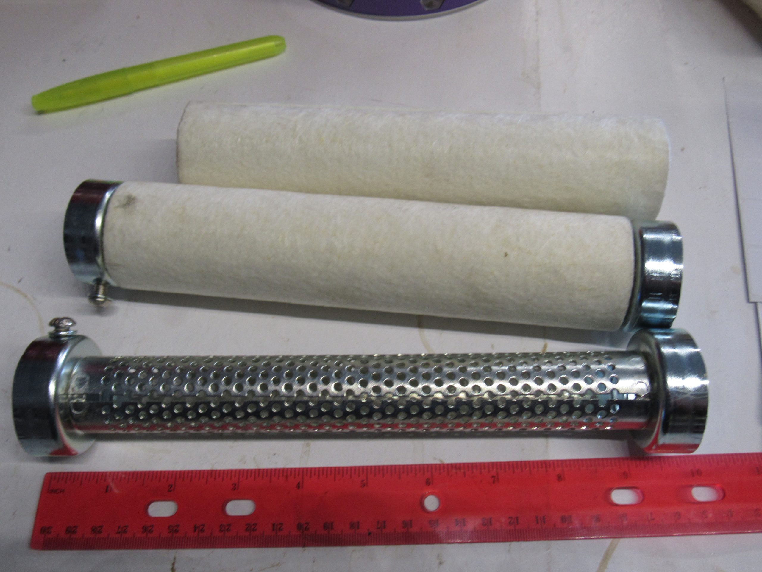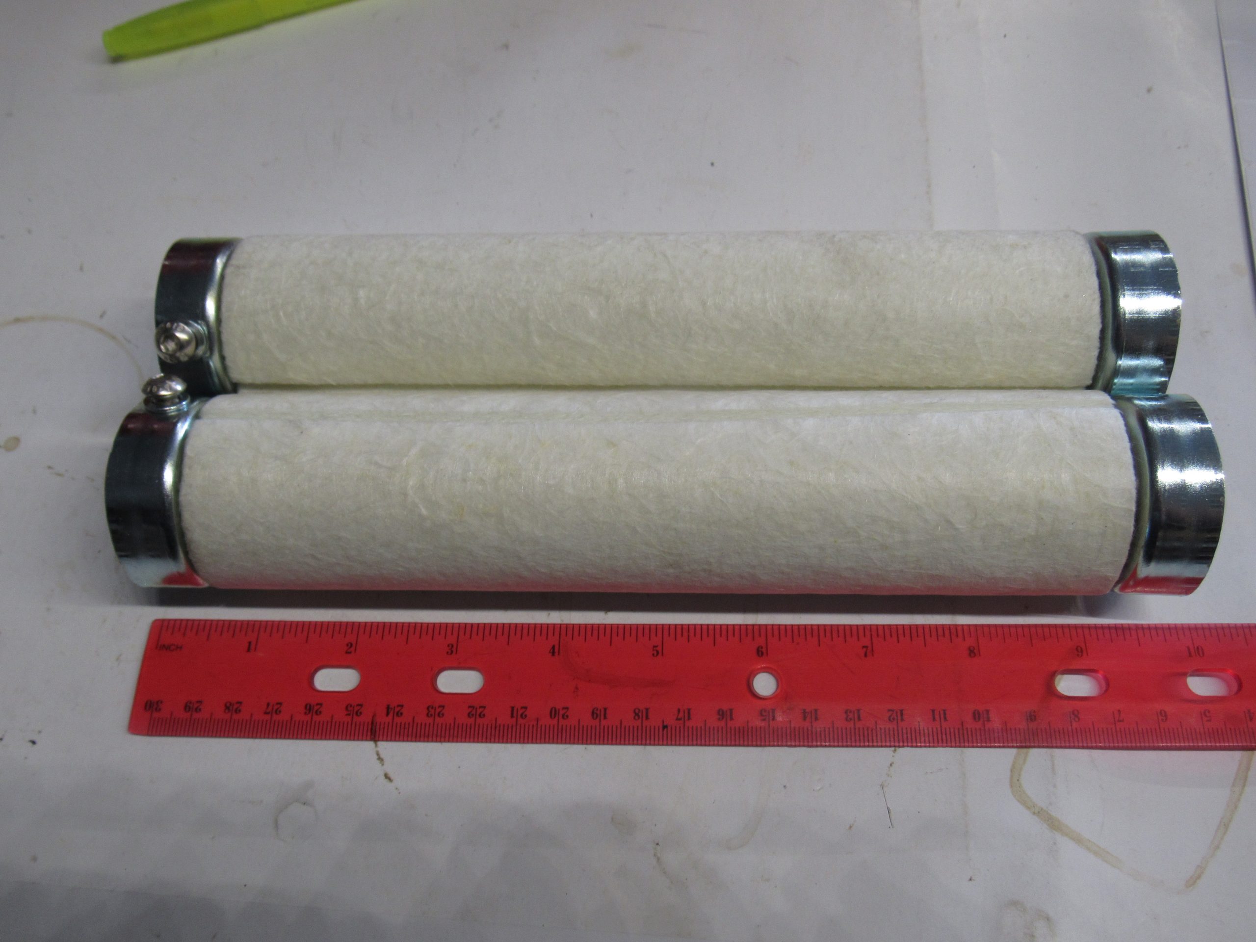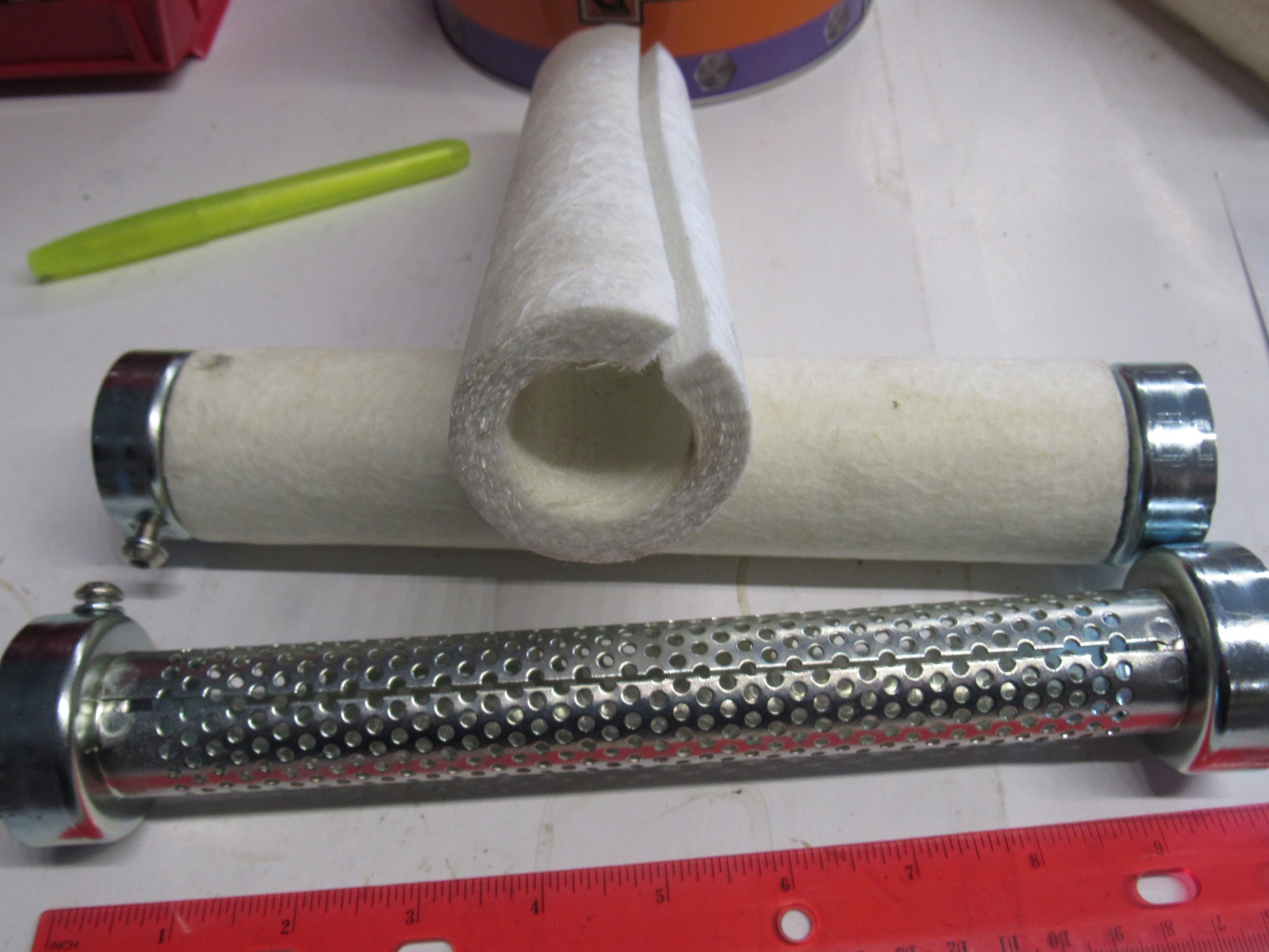 Baffle pipe set fits inside drag pipes. Baffle is 10″ long and fiberglass packing…They can be cut if you want..The OD on these baffles are 1 7/8″