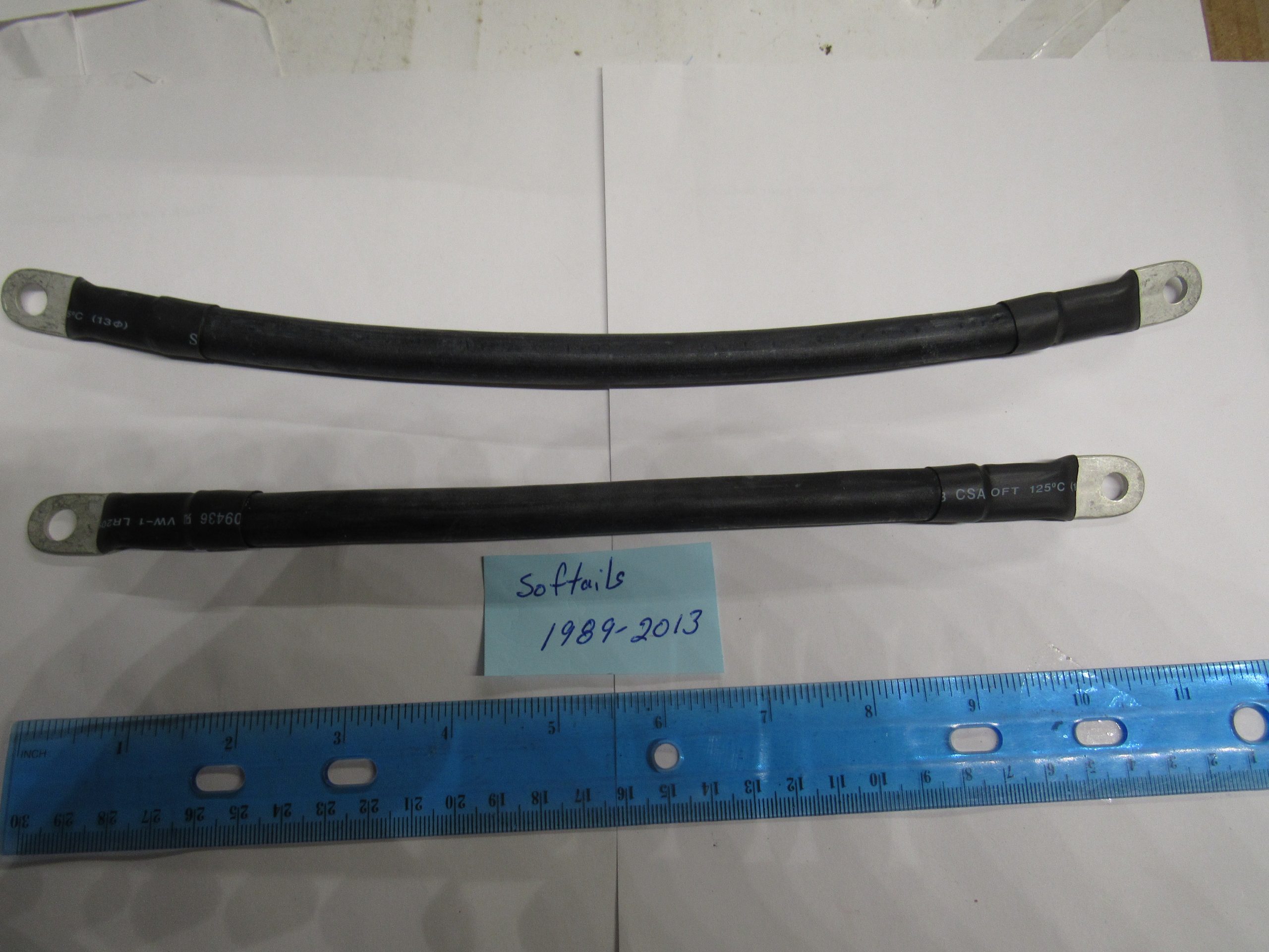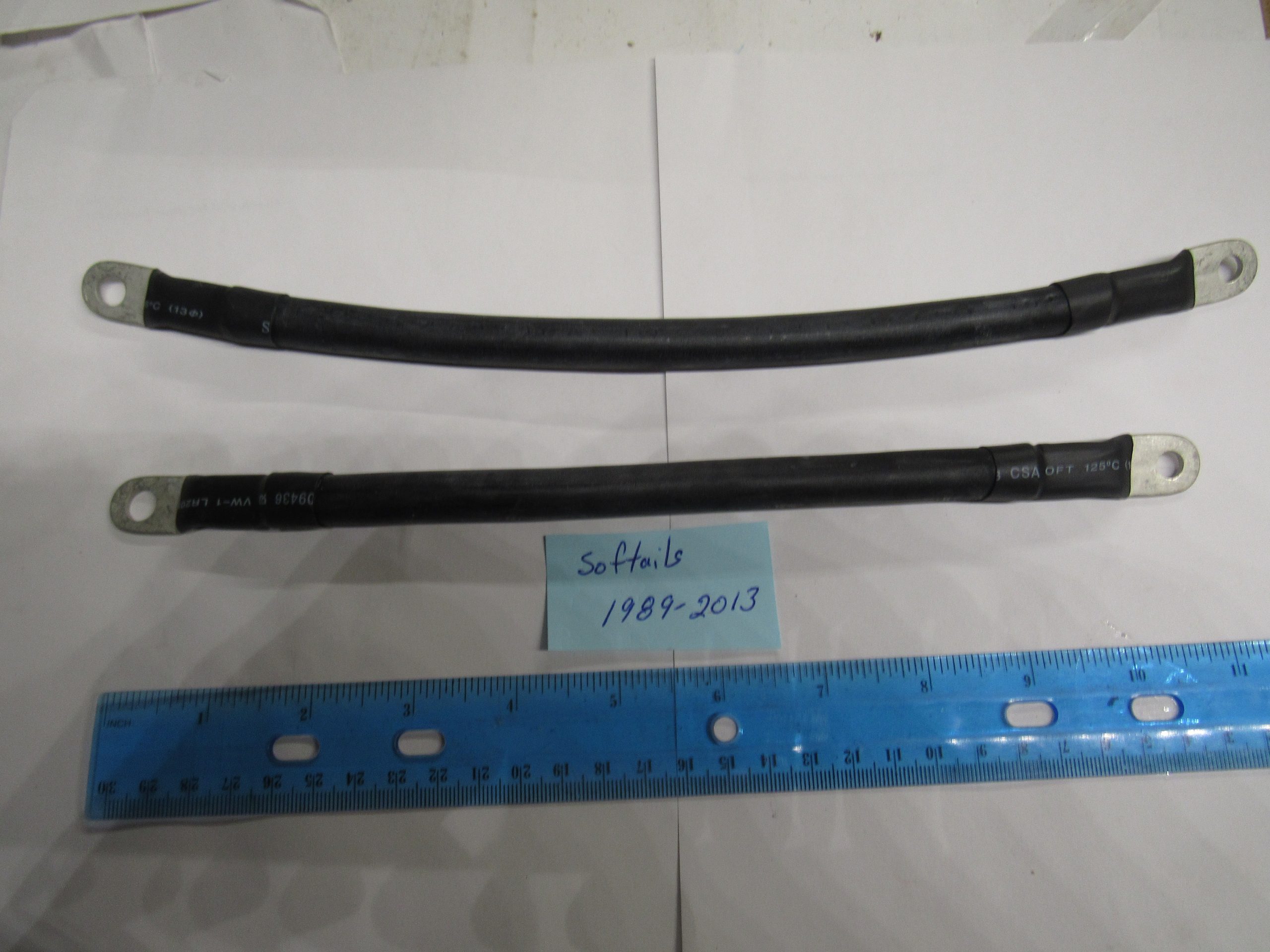 Fits Softails 1989-2013..This extreme duty battery cable set features #2 gauge wires which are very fat and flexible. The battery cables will transfer more cranking power with the very least amount of voltage drop.1 is 10″ long and 1 is 12″ long.. Check your parts book for correct fitment.. Reproduction parts..