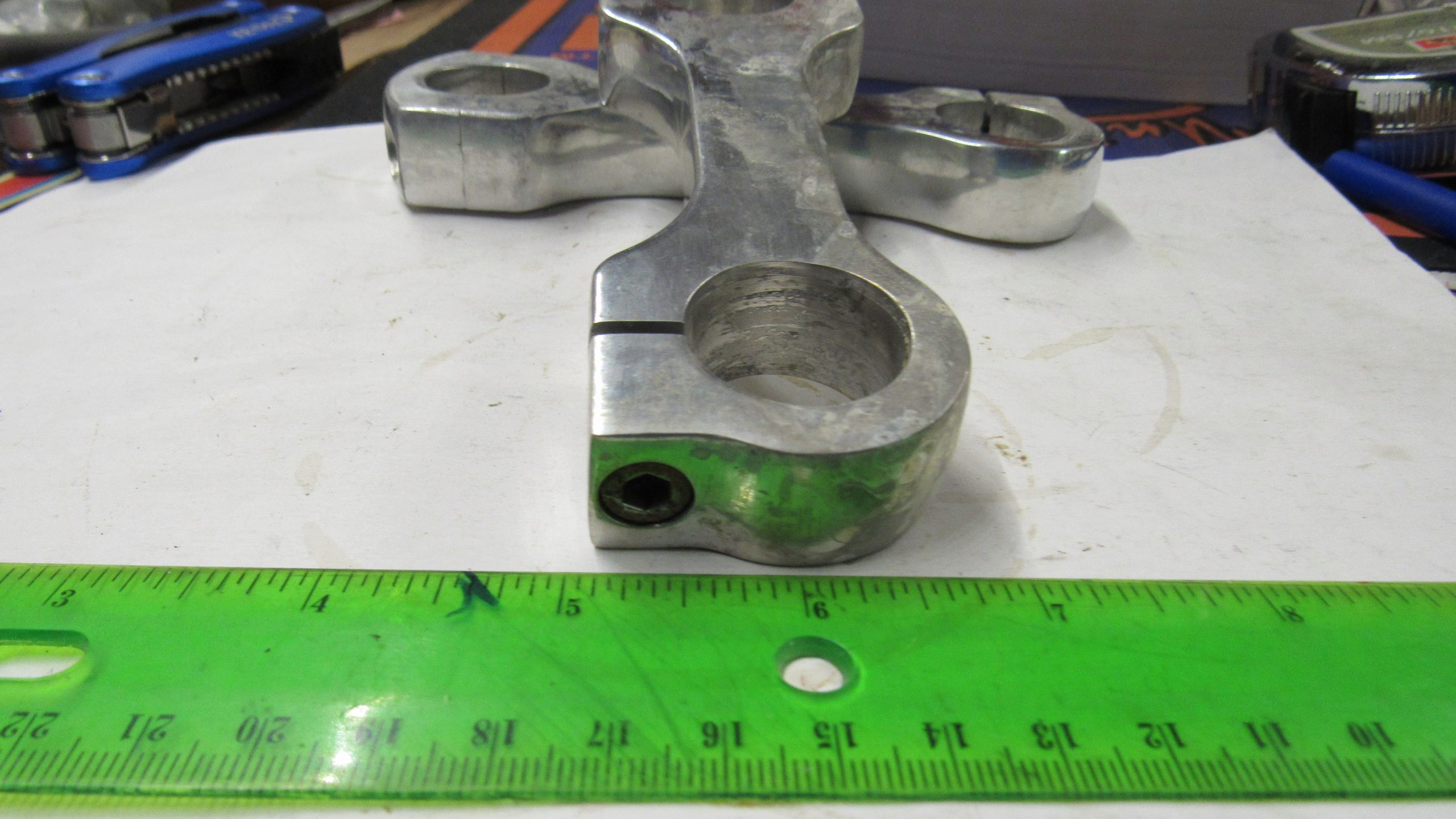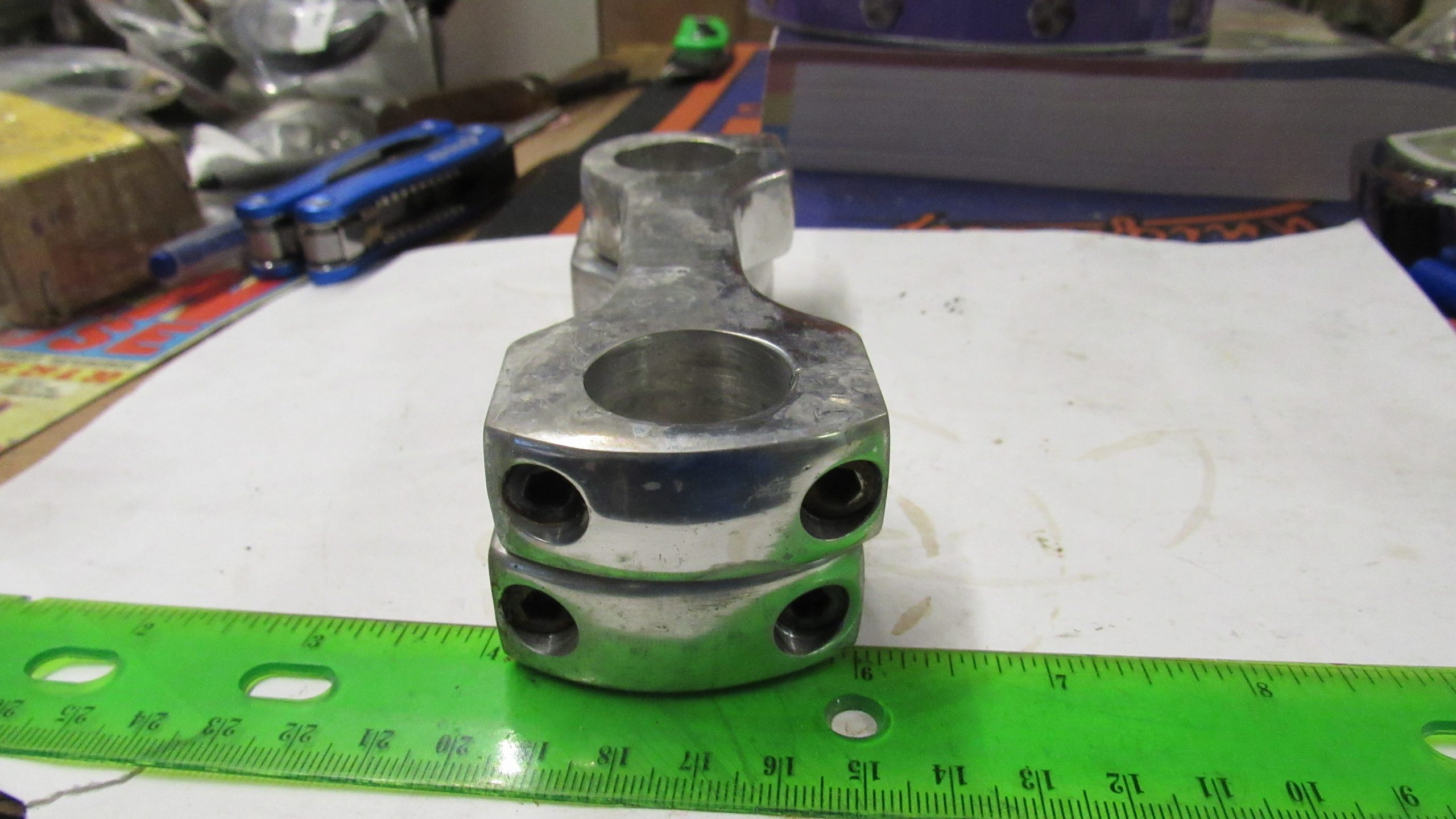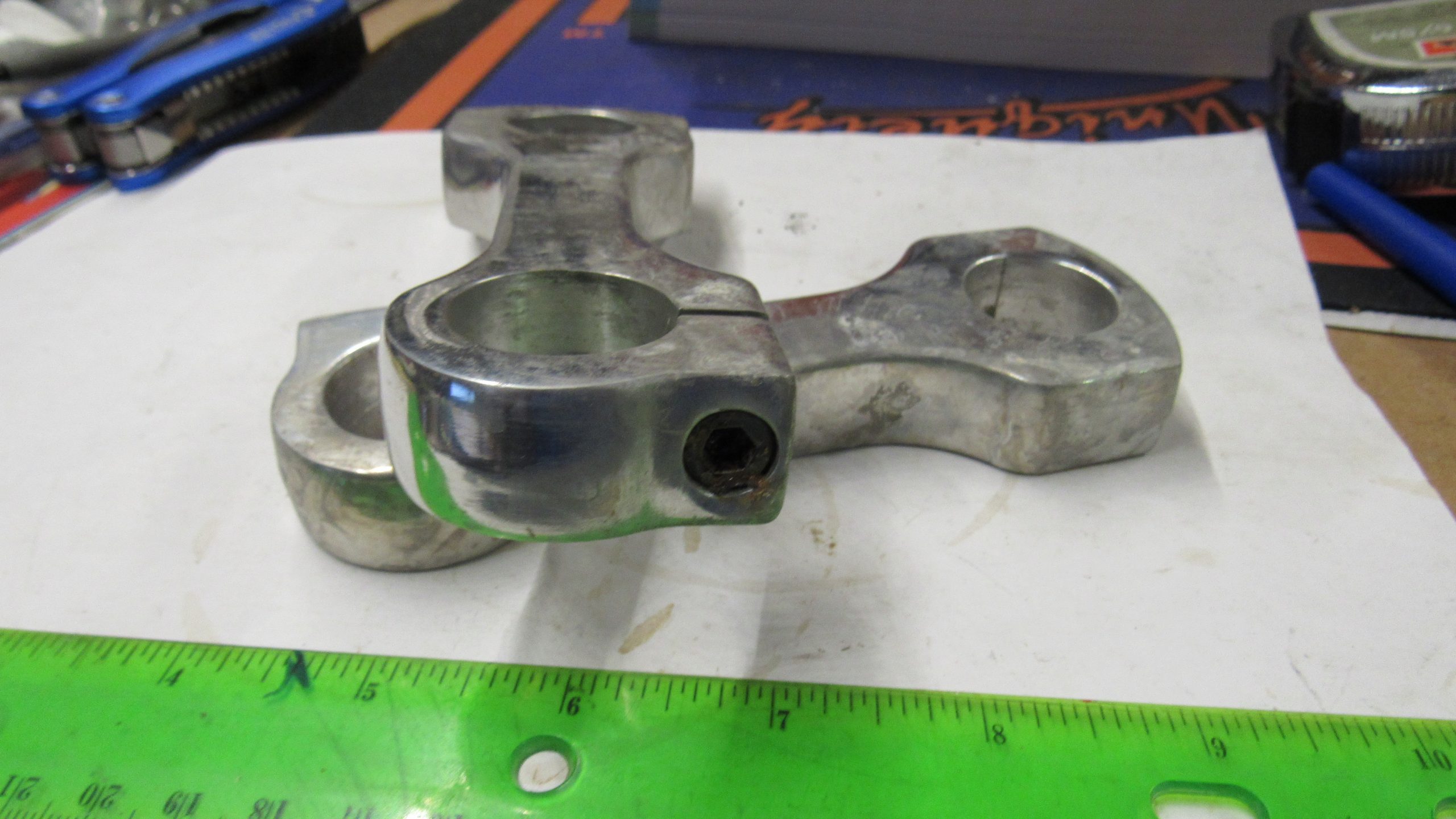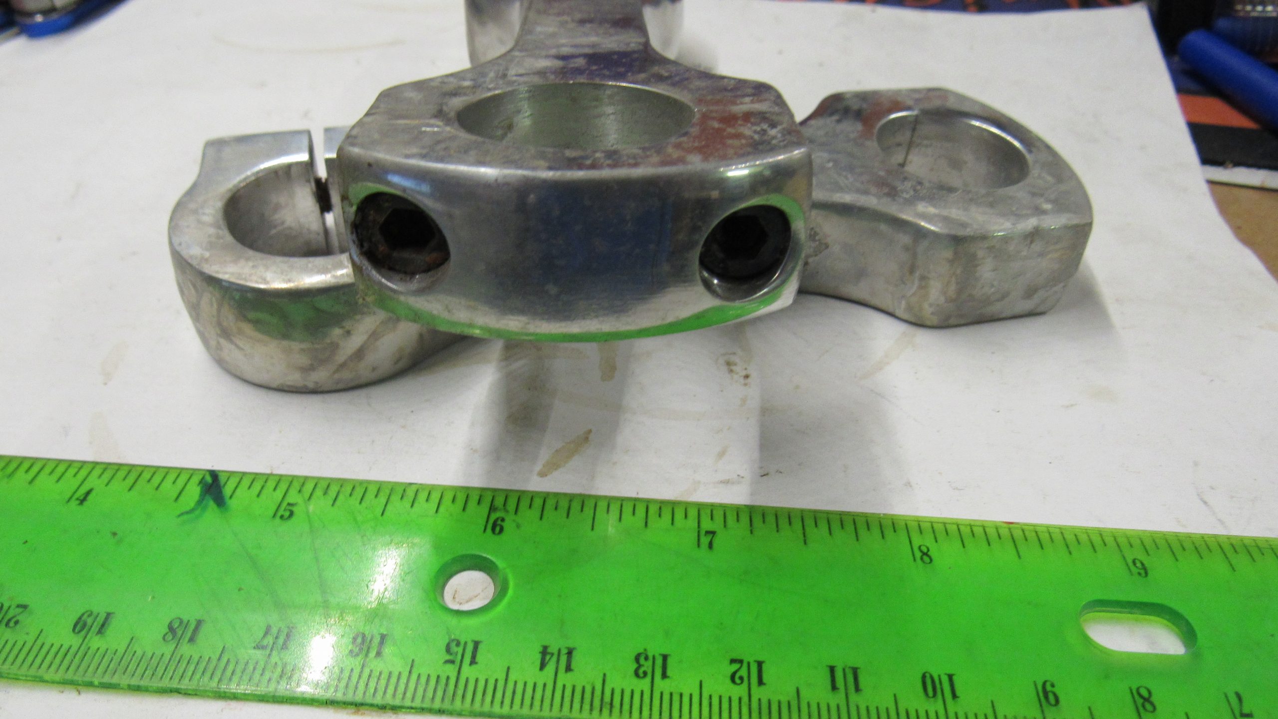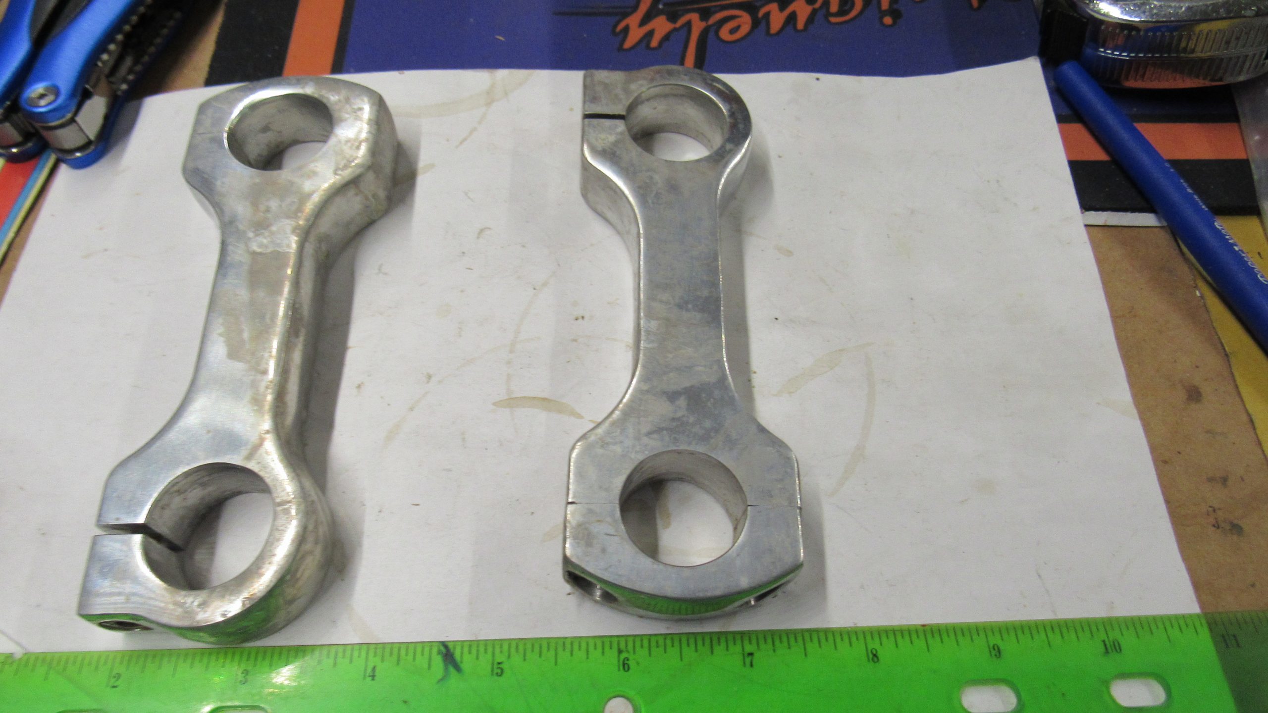 Fits Most models with 1″ bars. .Made of aluminum. They are new,but been sitting around forever. Tarnished and screws are rusty. Take a good look at pics before buying. No Returns.