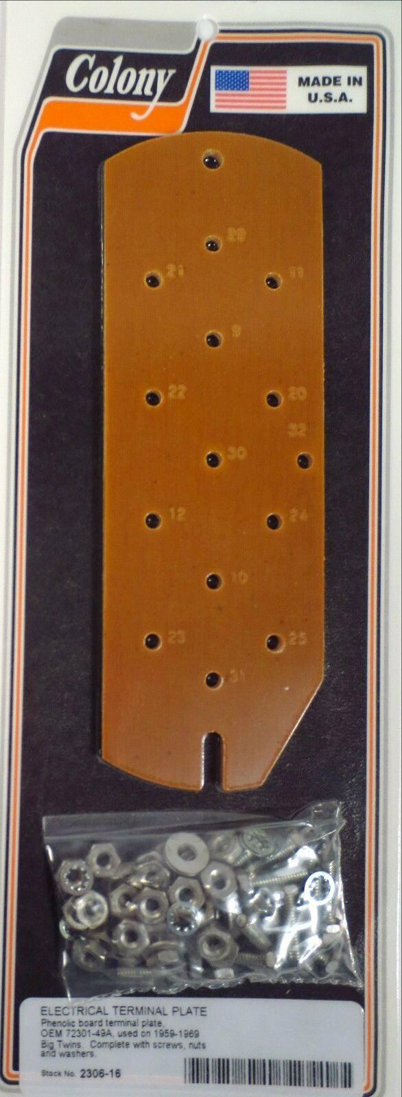 Fits Big Twins 1959-69..Phenolic board terminal plate with screws. .Made in USA.. Check your parts book for correct fitment.. Reproduction parts..